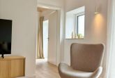 Die ebenerdige Wohnung hat einen offenen Wohnbereich mit großem Sofa und einem 55 Zoll Fernseher. Die moderne Küche, in der sich Hobby-Köche verwöhnen können bietet ihnen einen Induktionsherd, Backofen, Mikrowelle, großen Kühlschrank mit Eisfach, Geschirrspüler und eine Nespresso-Maschine Delonghi mit Milchaufschäumer.
