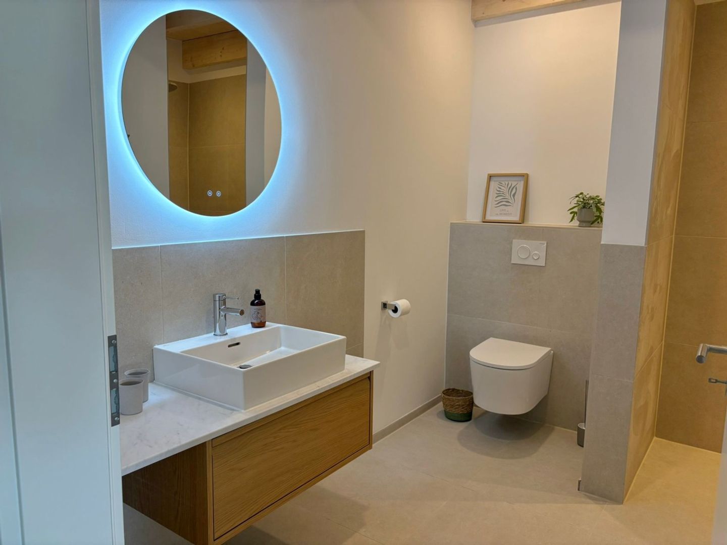 Wie in allen unseren Wohnungen genießen sie den Komfort eines modernen Badezimmers mit begehbarer Regendusche und mit separatem Gäste WC.