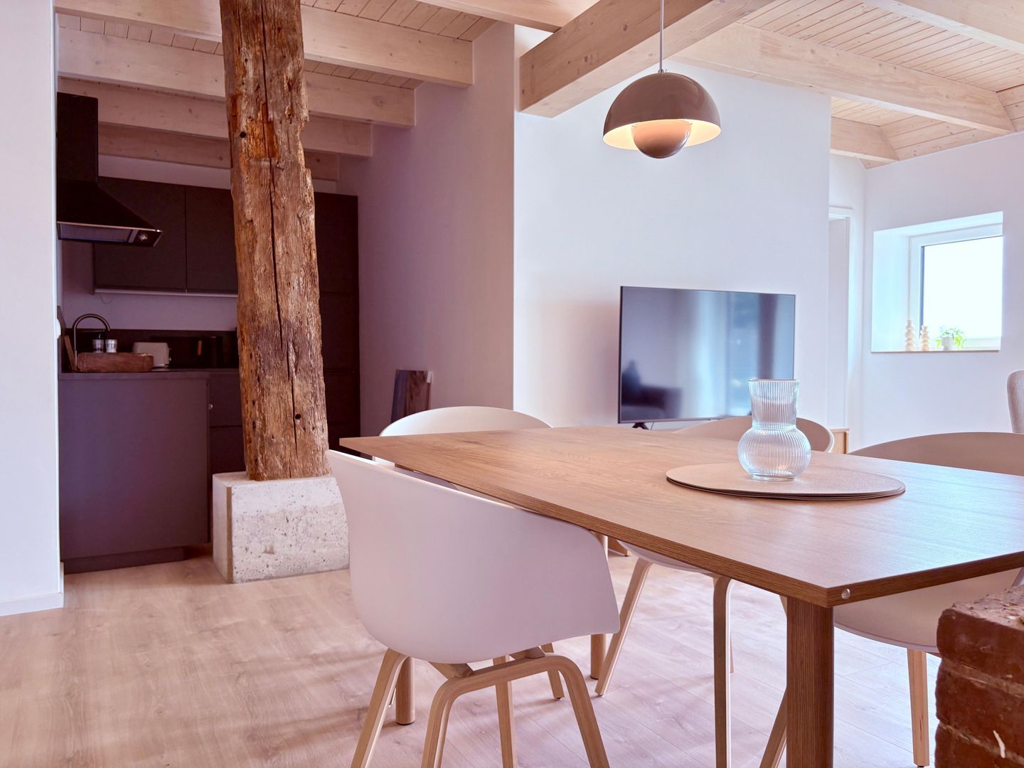 Helle, großzügige Räume mit sichtbaren historischen Balken