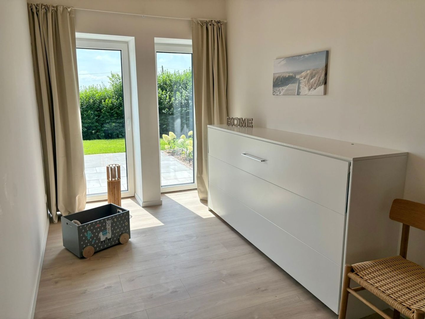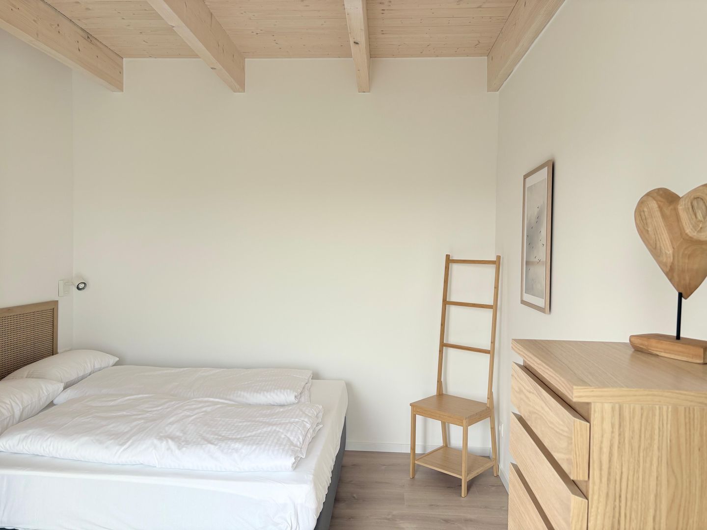 Die Schlafzimmer bieten einen schönen Blick ins Grüne und sind räumlich voneinander getrennt. Das große Schlafzimmer hat ein modernes Bett mit Topper in einer Größe von 180x200 cm und zusätzlich ein Klappbett von 90x200 cm.