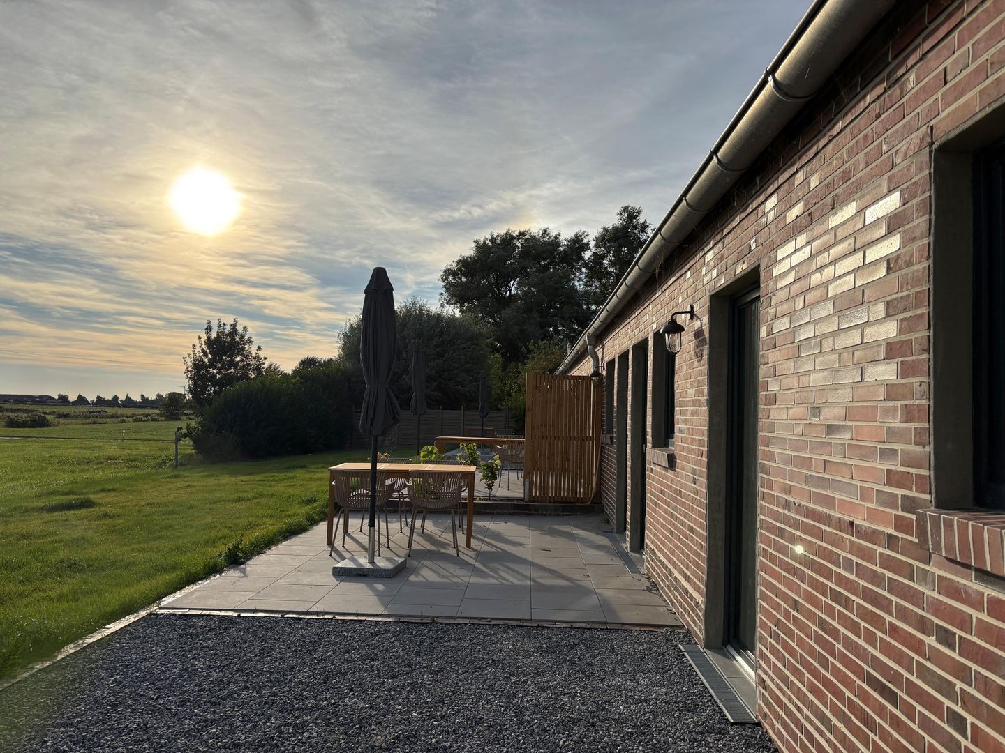 Sitzen Sie am Esstisch gesellig zusammen und schauen Sie von dort aus auf die weiten Felder.