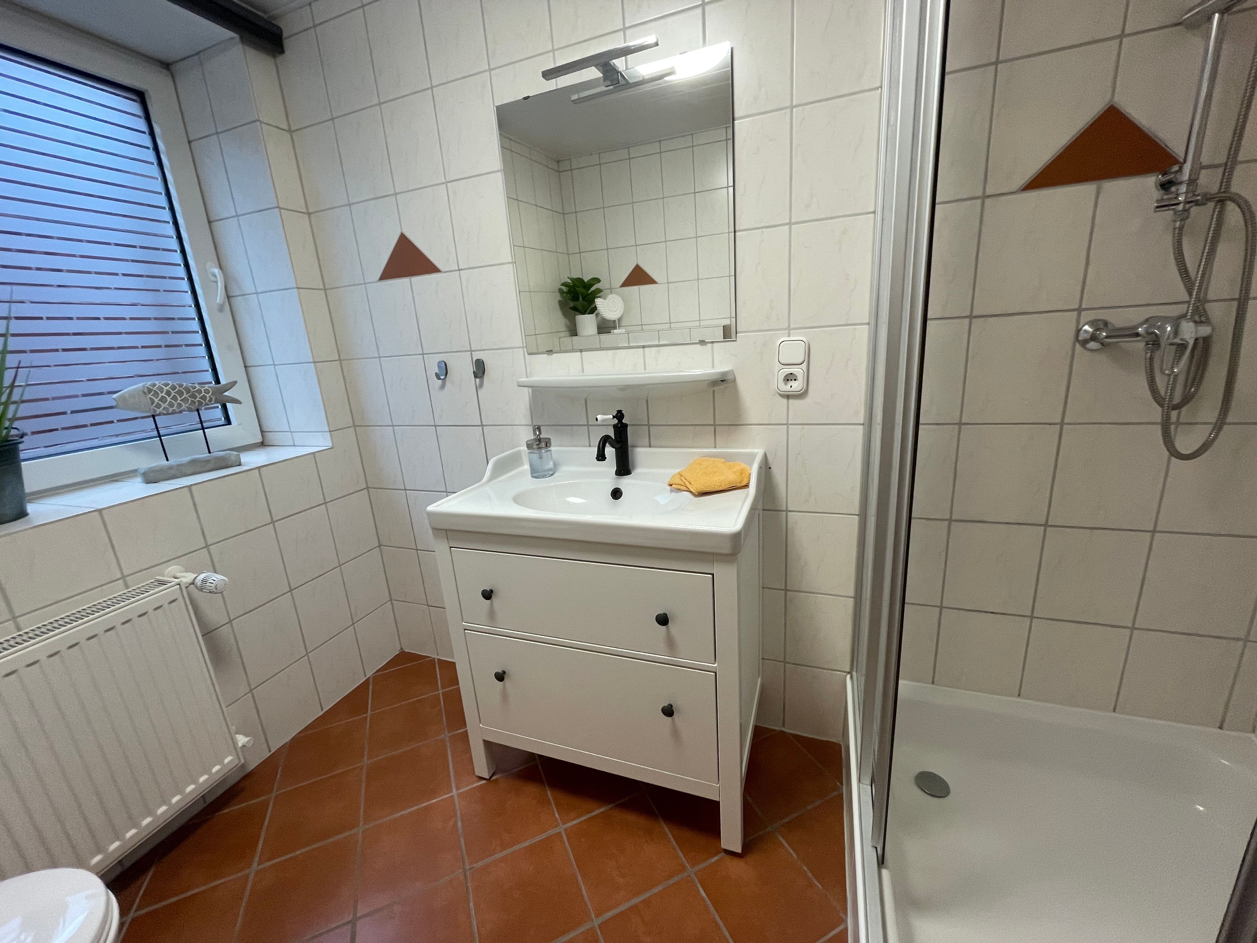 Das separate Bad ist mit Dusche und WC ausgestattet.