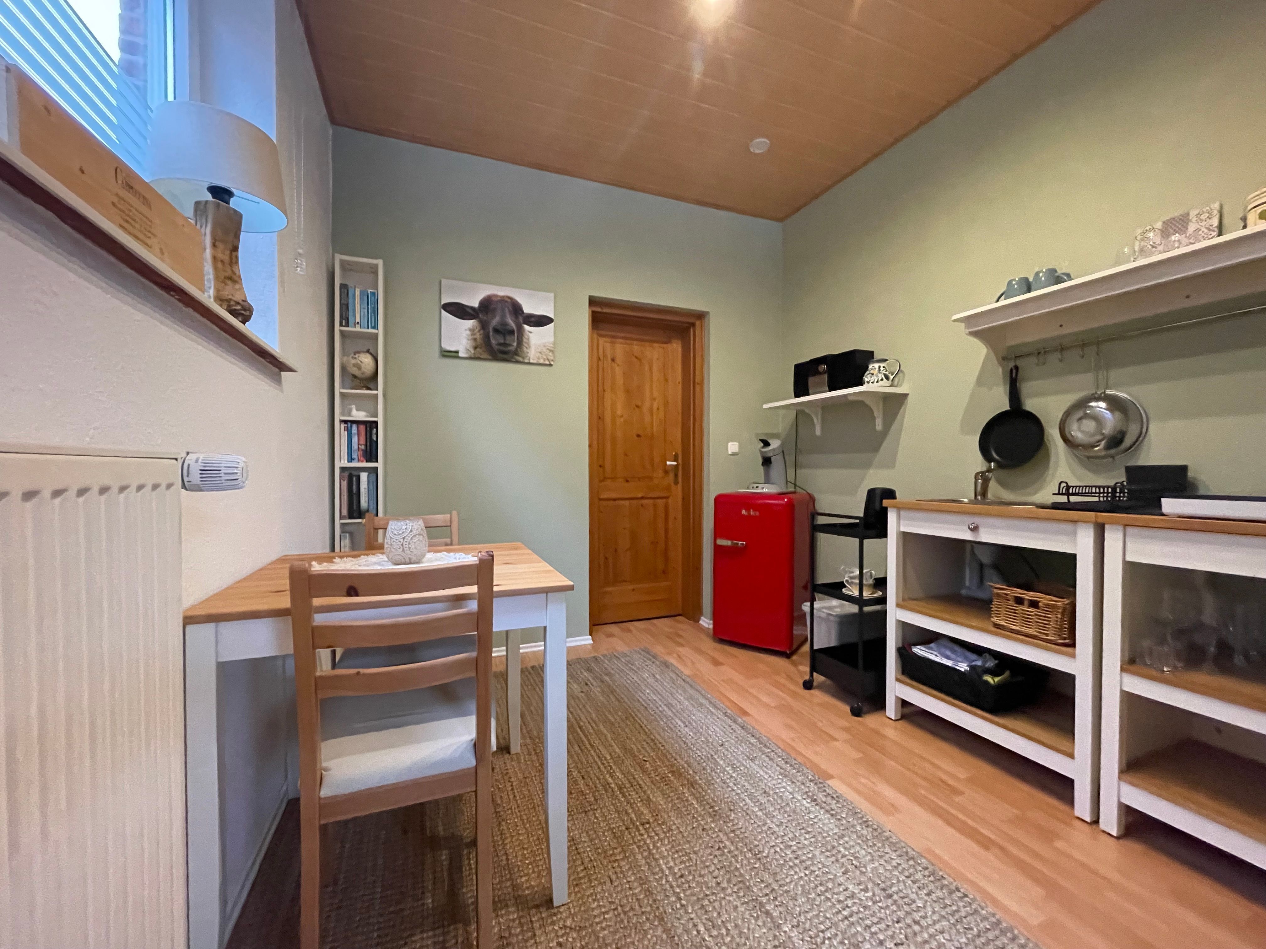 Hier können Sie gemütlich frühstücken oder einen ereignisreichen Tag ausklingen lassen. Das Apartment ist ausgestattet mit einer Senseo-Kaffeemaschiene,Geschirr,Wasserkocher und einem Kühlschrank mit Eisfach.
