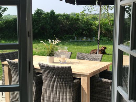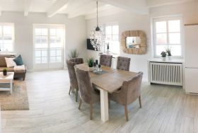 Die Farbharmonie des Hauses lässt das Inselgefühl auch bei schlechtem Wetter nicht im Stich. Charakter und Gemütlichkeit prägen den Stil des Hauses, in dem es sich auch an kühleren Tagen herrlich vor dem Kaminofen entspannen lässt. Die Sonnenterrasse bietet ganztägig Sonne und einen unverbauten Weitblick auf Feld und Wiesen. Durch nahegelegene Radwege werden Sie in idyllischster Weise in den beliebten Nachbarort Nieblum geführt, oder auch in das Zentrum von Wyk begleitet.