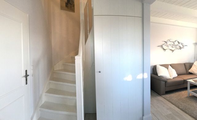Im Erdgeschoss befindet sich neben der offenen Küche nebst Wohn-und Esszimmer auch ein neu hergerichtetes Duschbad. Das Obergeschoss verfügt über drei Schlafzimmer. Zwei davon ausgestattet mit Doppelbetten und eines mit zwei Einzelbetten. Alle Möbel wurden von einem Inseltischler in feinster Handwerkskunst angefertigt. Zudem befindet sich ein Wannenbad auf der oberen Etage.