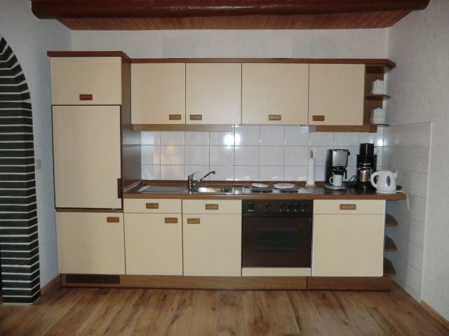Küche mit Einbauküche und Essecke