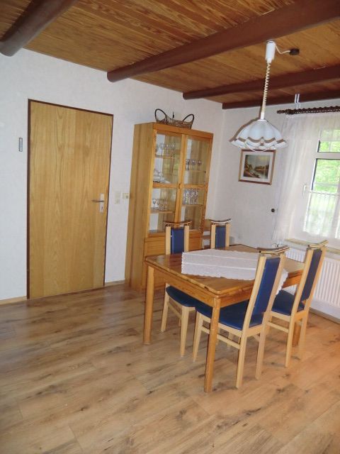 ist, bis auf das gefliestes Badezimmer, komplett mit Laminat ausgelegt.