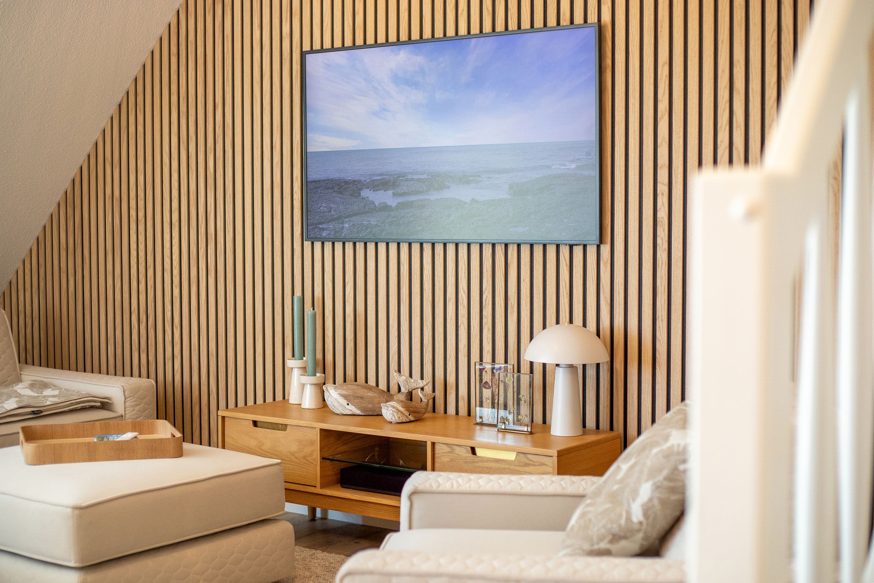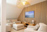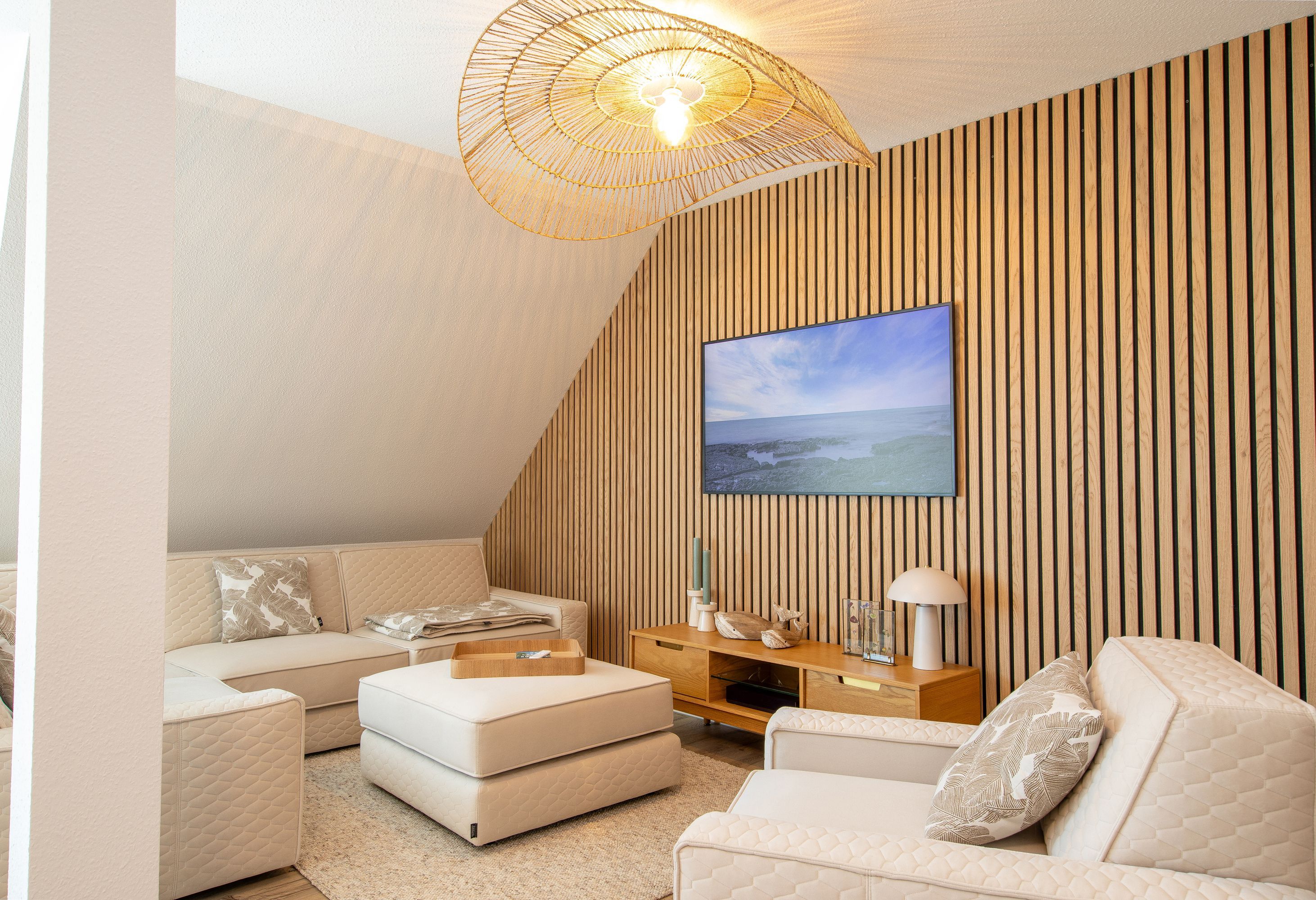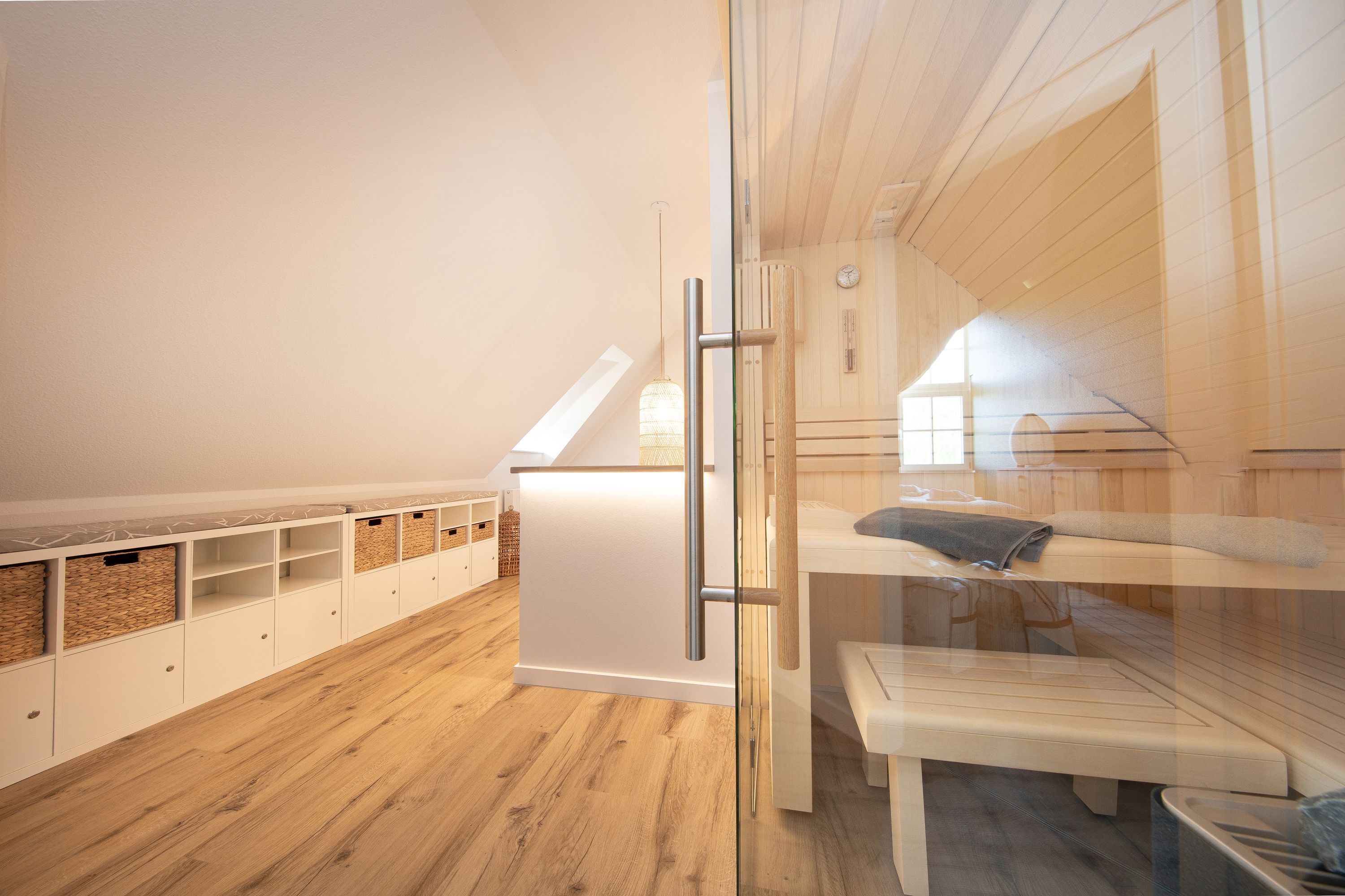 Wir freuen uns, Ihnen diese wundervolle Ferienwohnung im Haus an der Düne präsentieren zu dürfen. Die rund 90m2 große Ferienwohnung ersteckt sich über 2 Etagen und wurde zum Sommer 2025 umfassend renoviert und neu eingerichtet. Mit viel Liebe zum Detail, haben die Eigentümer der Wohnung, ein traumhaftes Domizil erschaffen. Neben den beiden Elternschlafzimmern steht ein zusätzlich Kinderschlafzimmer mit Etagenbett zur Verfügung. Ein Traum für die kleinsten der Familie. Der an den offenen Wohn,- Essbereich angrenzende Balkon ist Richtung Süden ausgerichtet und lässt sich so prima zum Sonnenbaden nutzen. Die Möglichkeit 2 PKW abzustellen rundet den Konfort der Wohnung ab. Als besonderes Highlight gibt es eine private und sehr moderne Sauna im OG der Wohnung. Hier lässt es sich aushalten... Die direkte Strandlage, die Nähe zu Restaurants und den berühmten Bäderorten Sellin, Baabe und Göhren lassen diese Wohnung im Herzen des Ostseebad Mönchgut zu einem perfekten Ausgangspunkt für Wanderungen, Strandbesuche und verschiedenste Unternehmungen werden. Herzlich Willkommen in Ihrem nächsten Urlaubsdomizil.