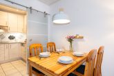 Die moderne separate Küche ist voll ausgestattet und bietet unter anderem ein modernes Induktionskochfeld, Backofen, Kühlschrank mit Gefrierfach, Spülmaschine und weitere kleine Küchenhelfer wie Kaffeemaschine, Wasserkocher und Toaster.
