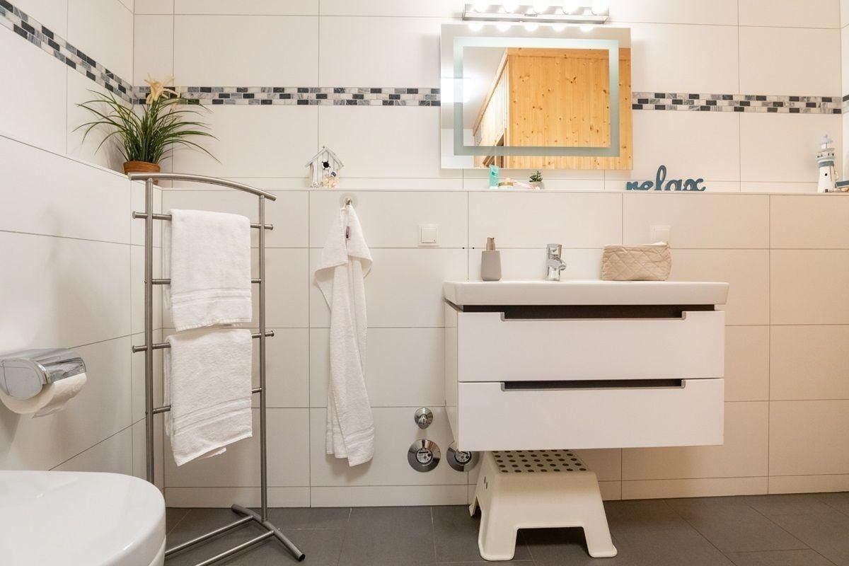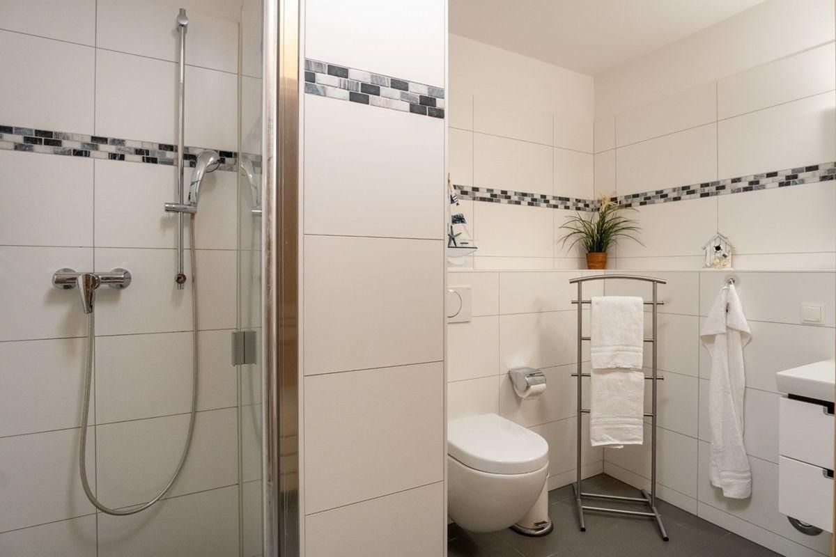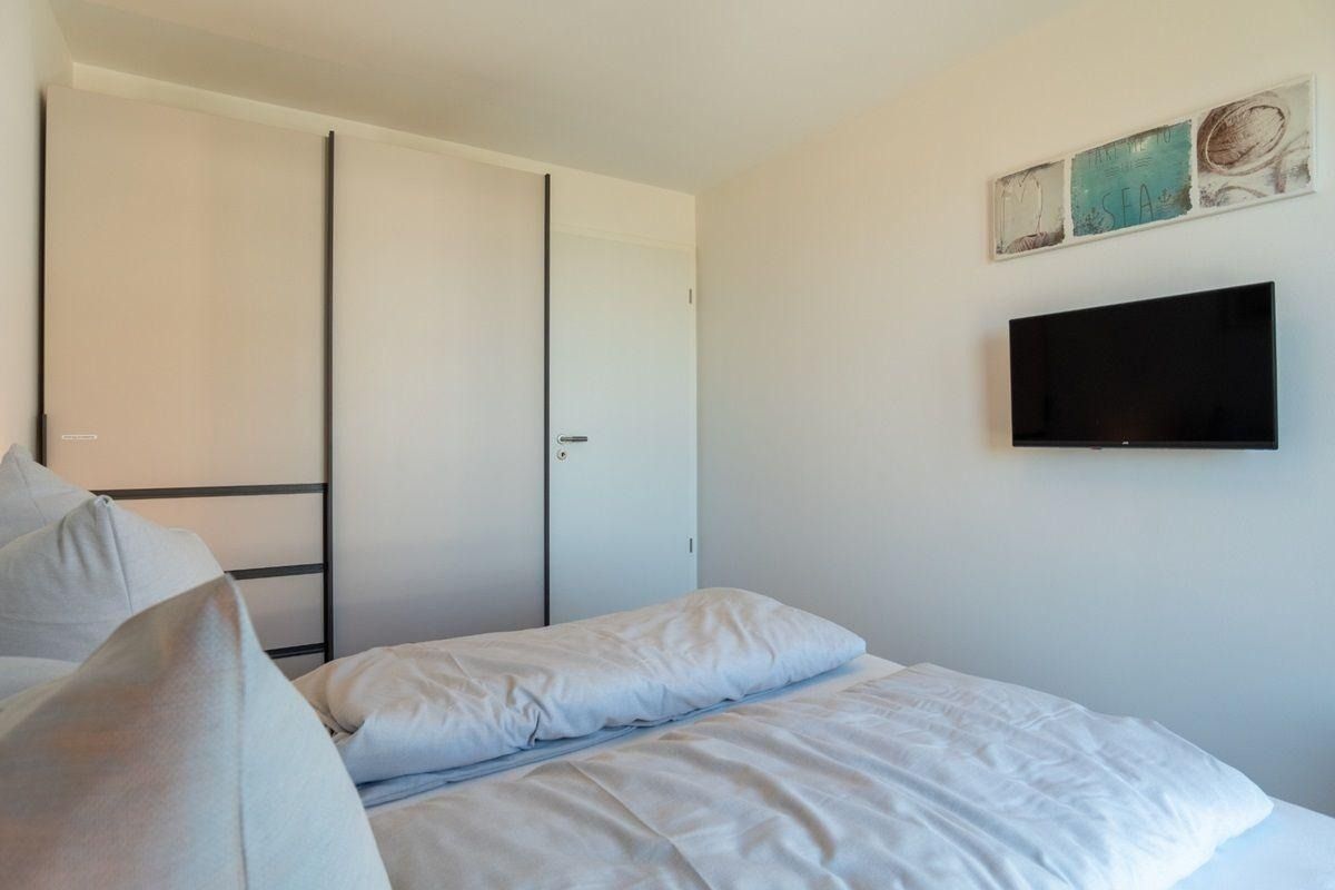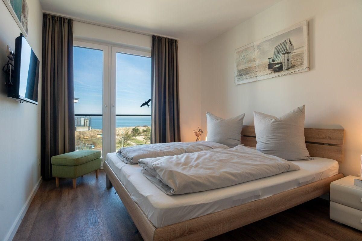 Urlauben Sie auf großzügigen 71 m² (2. Etage) mit Nordwest-Balkon. Das lichtdurchflutete Wohnzimmer ist mit einer gemütlichen Sofaecke, Flatscreen-TV und DVD-Player ausgestattet. Im Essbereich finden bequem vier Personen Platz zum Schlemmen. Die angrenzende Küchenzeile ist, für den Urlaubsbedarf, voll ausgestattet. Ein Backofen und ein Geschirrspüler gehören ebenso dazu, wie die Kaffeemaschine, der Wasserkocher und ein Toaster. Geschirr und Besteck sind ausreichend vorhanden. Vom Wohnzimmer aus gelangen Sie auf den Balkon mit Blick zur Ostsee. Das große Schlafzimmer verfügt über ein gemütliches Doppelbett (160*200cm) und einen Flatscreen-TV. Das zweite Schlafzimmer ist mit zwei gemütlichen Einzelbetten und einem geräumigen Schrank eingerichtet. Das Badezimmer ist mit einer ebenerdigen Dusche mit Glastrennwand und einer Sauna ausgestattet.