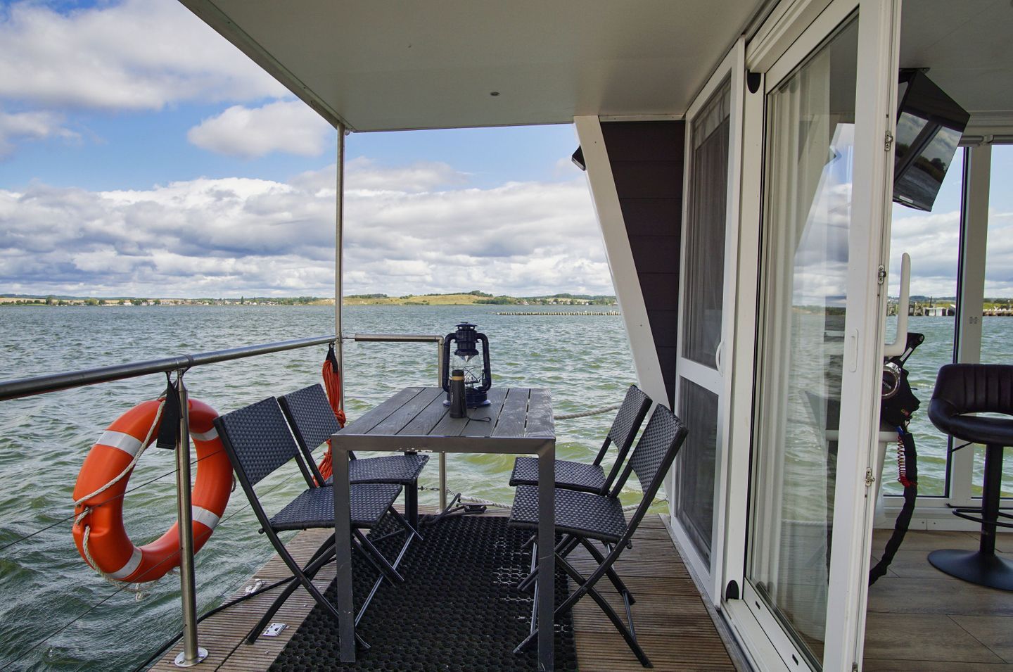 Das Hausboot Lydia liegt fest und sicher am Bootsanleger im Hafen von Gager. Bitte beachten Sie, dass Ausfahrten auf dem Wasser nicht vorgesehen sind. ++