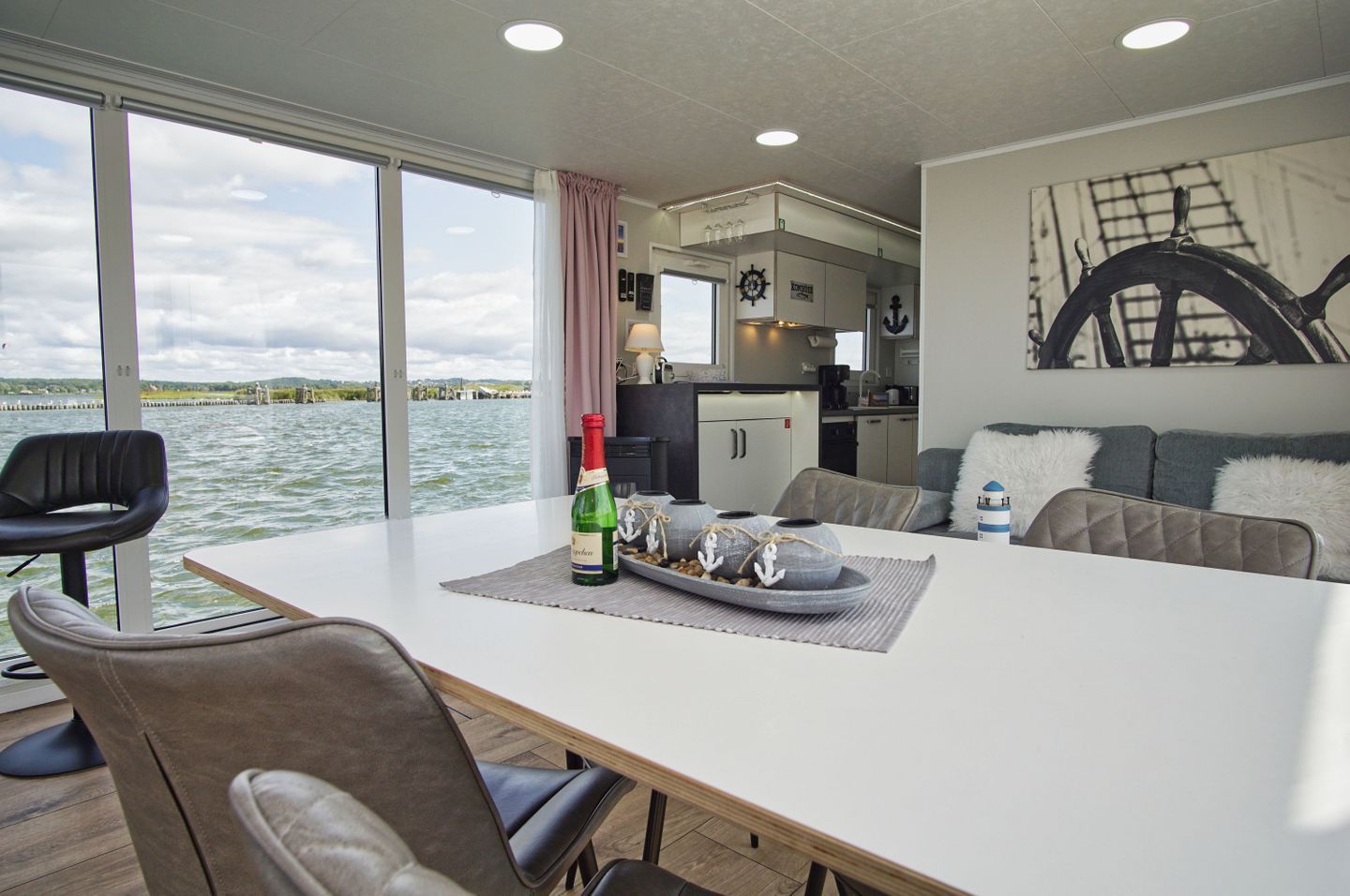 ALLGEMEINE ECKDATEN // 3-Raum Hausboot für bis zu 4 Personen, 48 m², Kamin und Sauna, großzügige Dachterrasse, Rundum-Meerblick, WLAN ++