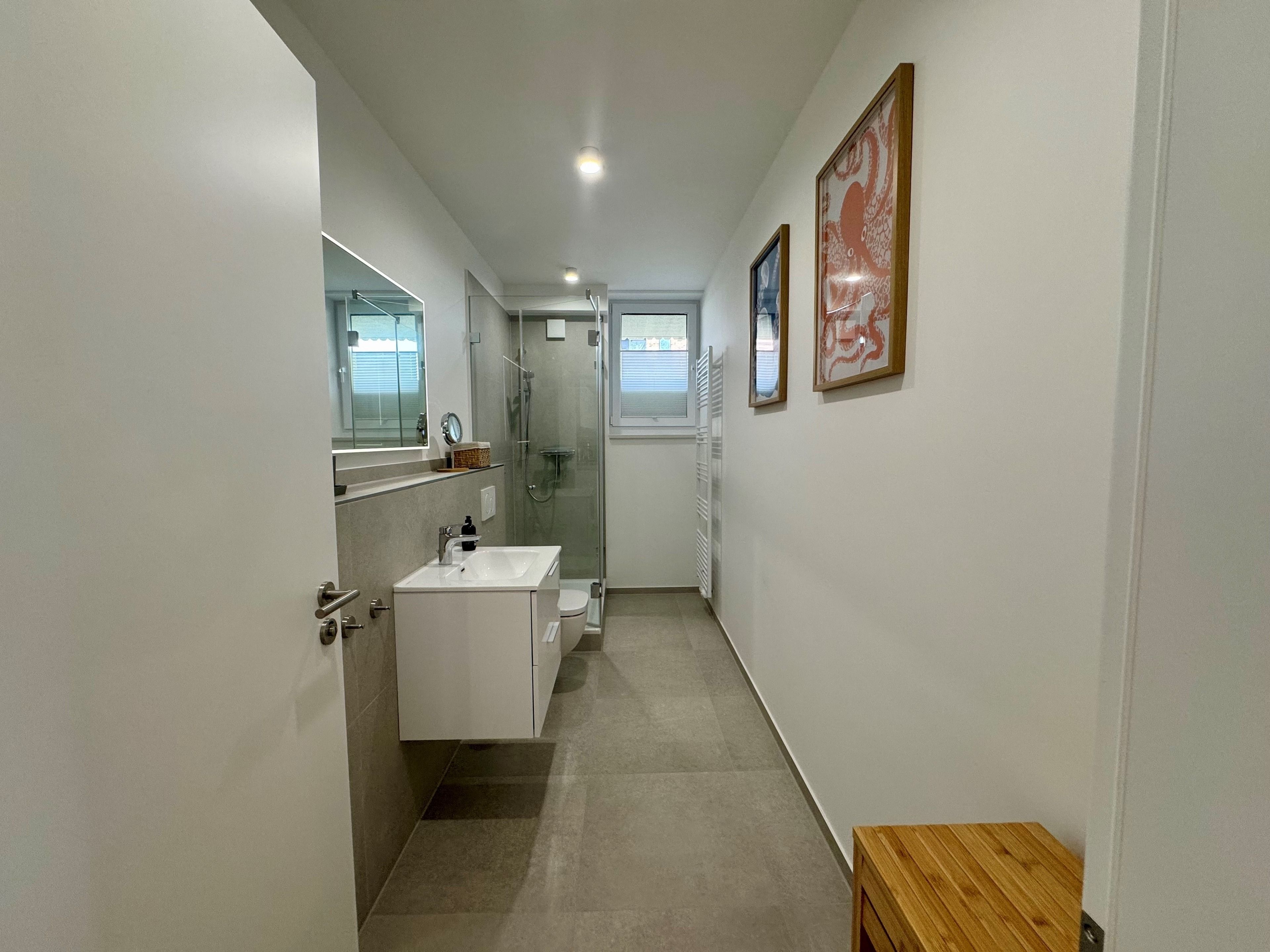 Das helle Duschbad ist mit einem Fenster ausgestattet und vom Wohnbereich erreichbar.