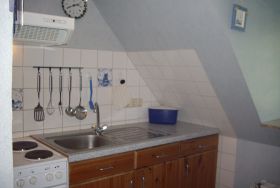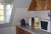 Richtige Urlaubsstimmung kommt auf der schönen Terrasse der Ferienwohnung auf. Ihnen stehen neben einem Kühlschrank auch eine Kaffeemaschine und eine Mikrowelle zur Verfügung.