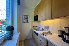 Unsere neuen geräumigen 2 und 3-Raum-Wohnungen, einige barrierefrei ausgestattet, mit großem Balkon und allem Komfort einer 4-5-Sterne-Kategorie, haben fast alle Meerblick. Die Appartements verfügen über 2-6 Schlafplätze, eine hochwertige Küche und ein exklusives Bad. Die Ausstattung ist auf dem neuesten Stand der Technik (Herd, Backofen, Mikrowelle, Geschirrspüler, Smart-TV,, etc.).