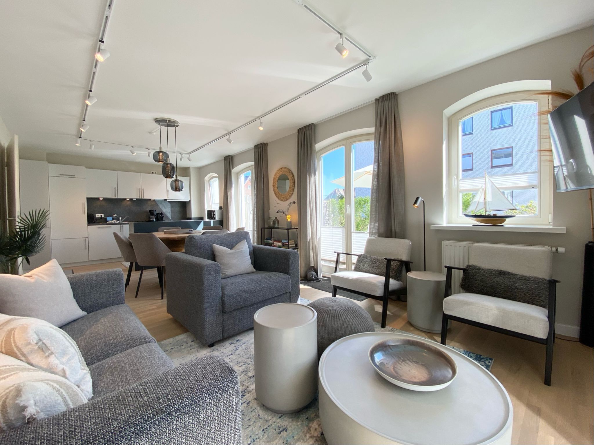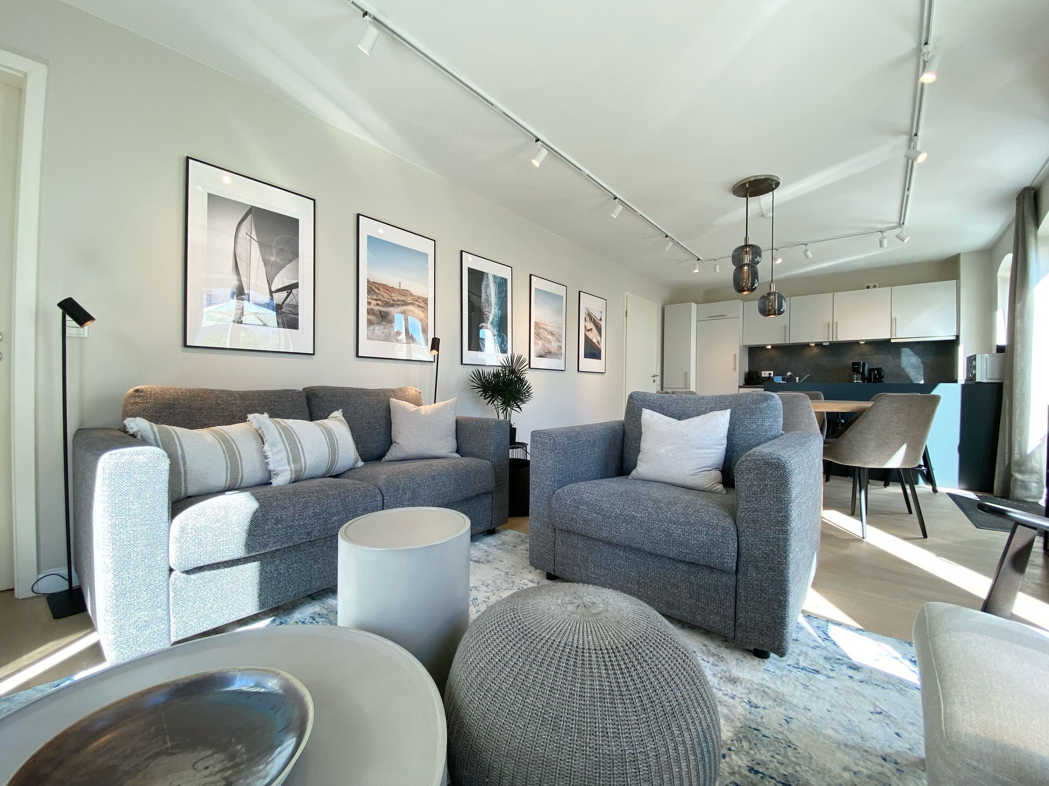 Küche: Die voll ausgestattete Küchennische lässt keine Wünsche offen. Sie verfügt über ein Ceran-Kochfeld, Backofen, Geschirrspüler, Kühlschrank mit Gefrierfach sowie eine Filter-Kaffeemaschine, Wasserkocher und Toaster. Alles, was Sie für die Zubereitung Ihrer Mahlzeiten benötigen, ist vorhanden.