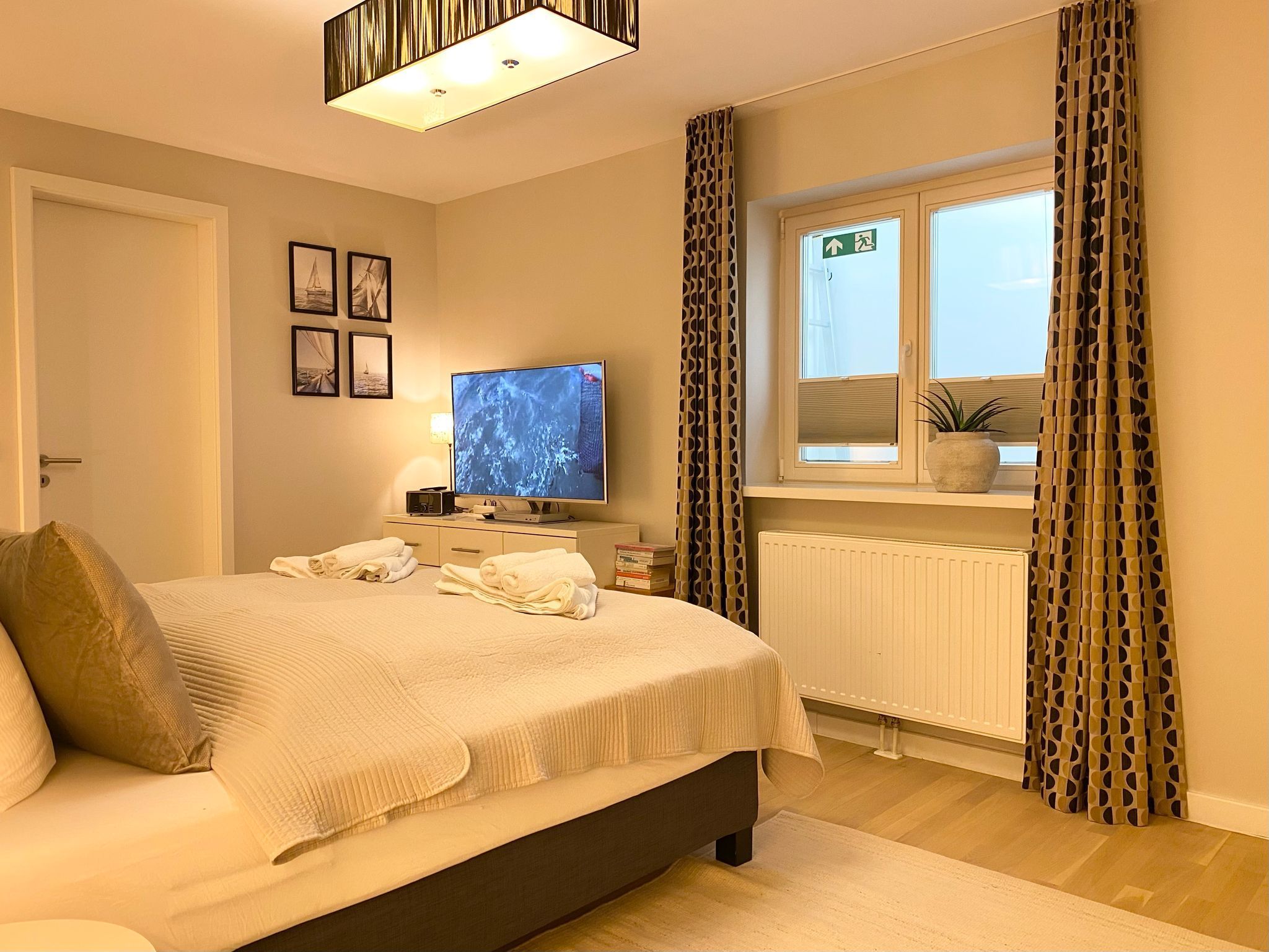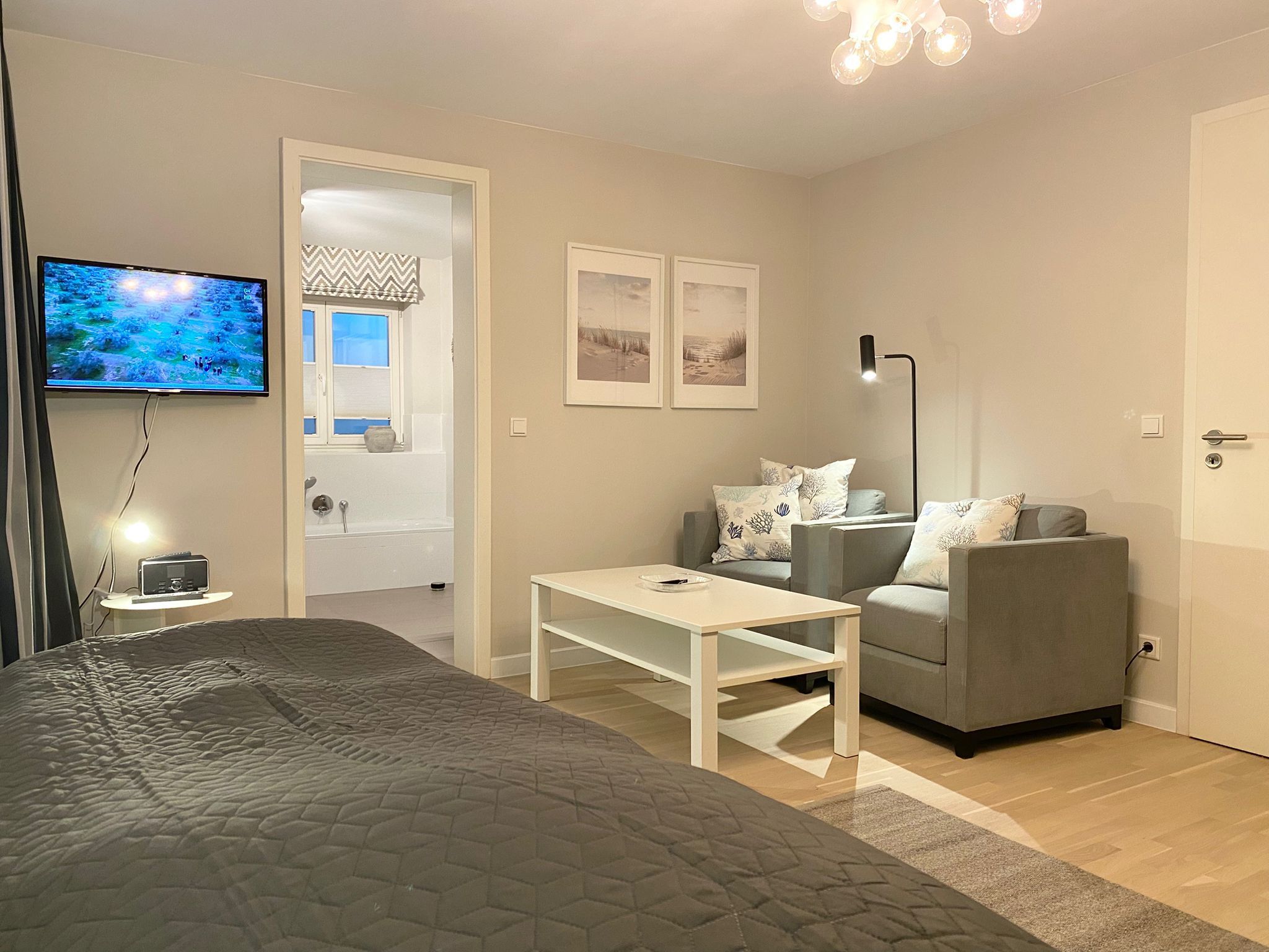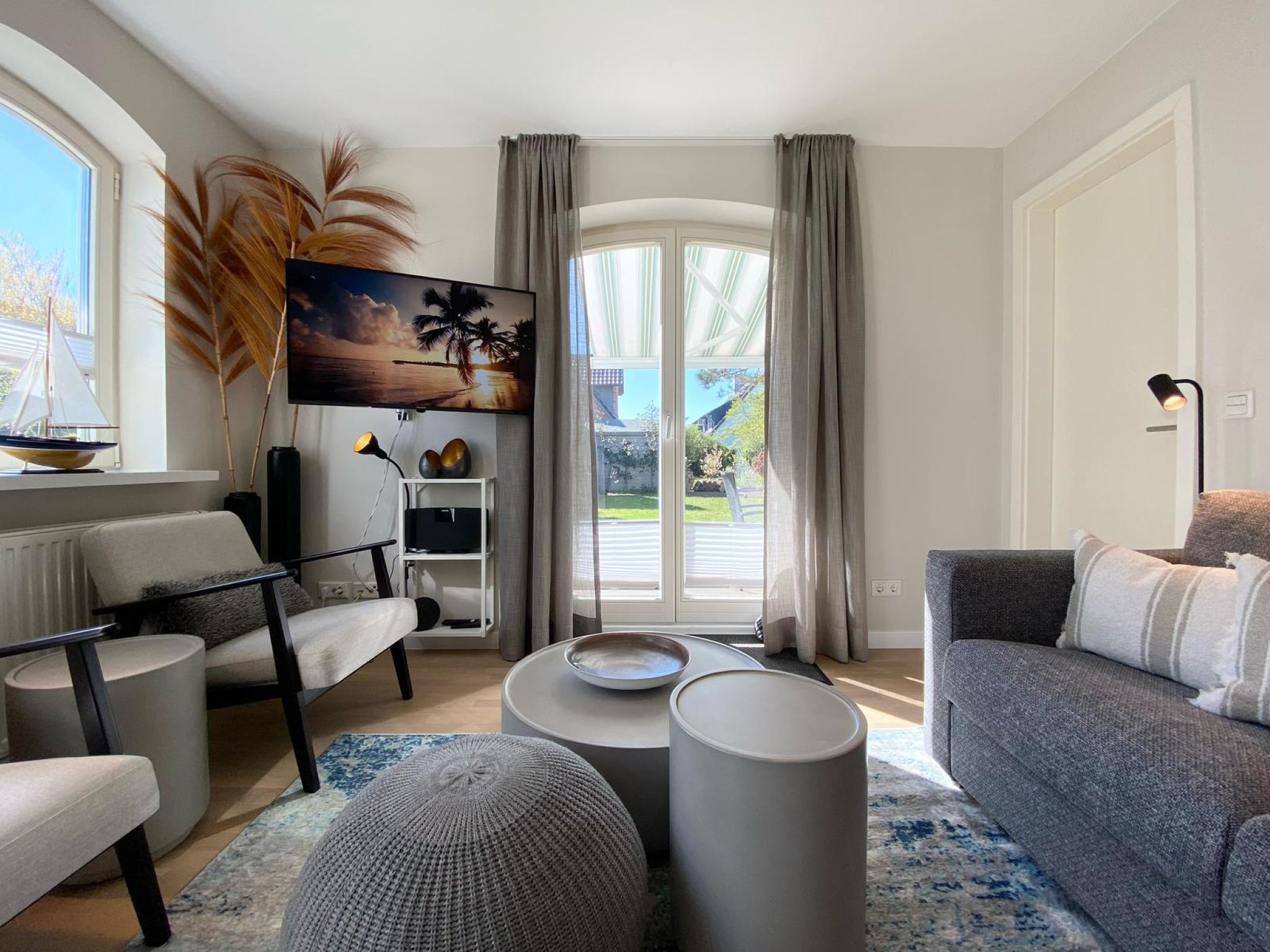 In unserer frisch renovierten 4-Zimmer-Ferienwohnung, die sich im Erdgeschoss und Untergeschoss unserer charmanten Bäderstilvilla befindet. Hier erwartet Sie moderner Komfort in stilvollem Ambiente.