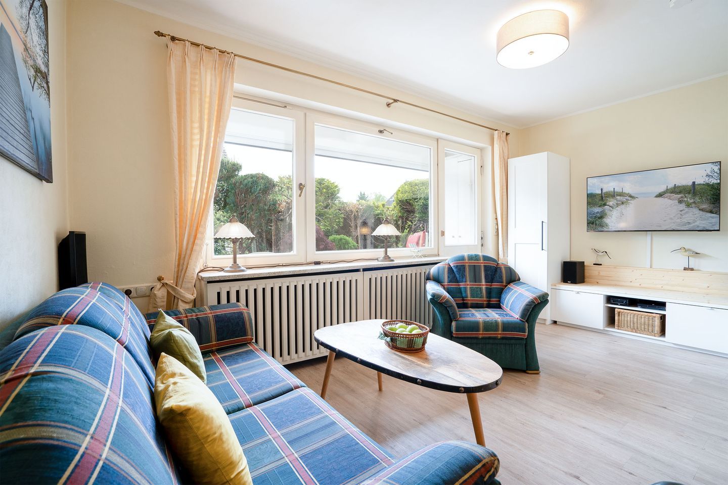 Willkommen im Ferienhaus Luis in Niendorf – ein charmantes Reihenendhaus in ruhiger Lage. Auf 47 m² bietet das Haus Platz für bis zu vier Personen und eignet sich ideal für Familien. Es gibt zwei Schlafzimmer und einen offenen Wohnbereich mit Sofaecke und Essbereich. Für Unterhaltung sorgt ein Fernseher. Das Schlafzimmer hat zwei Einzelbetten (0,90 x 2,00 m) und ein zweites Schlafzimmer mit einem Etagenbett (0,90 x 2,00 m).