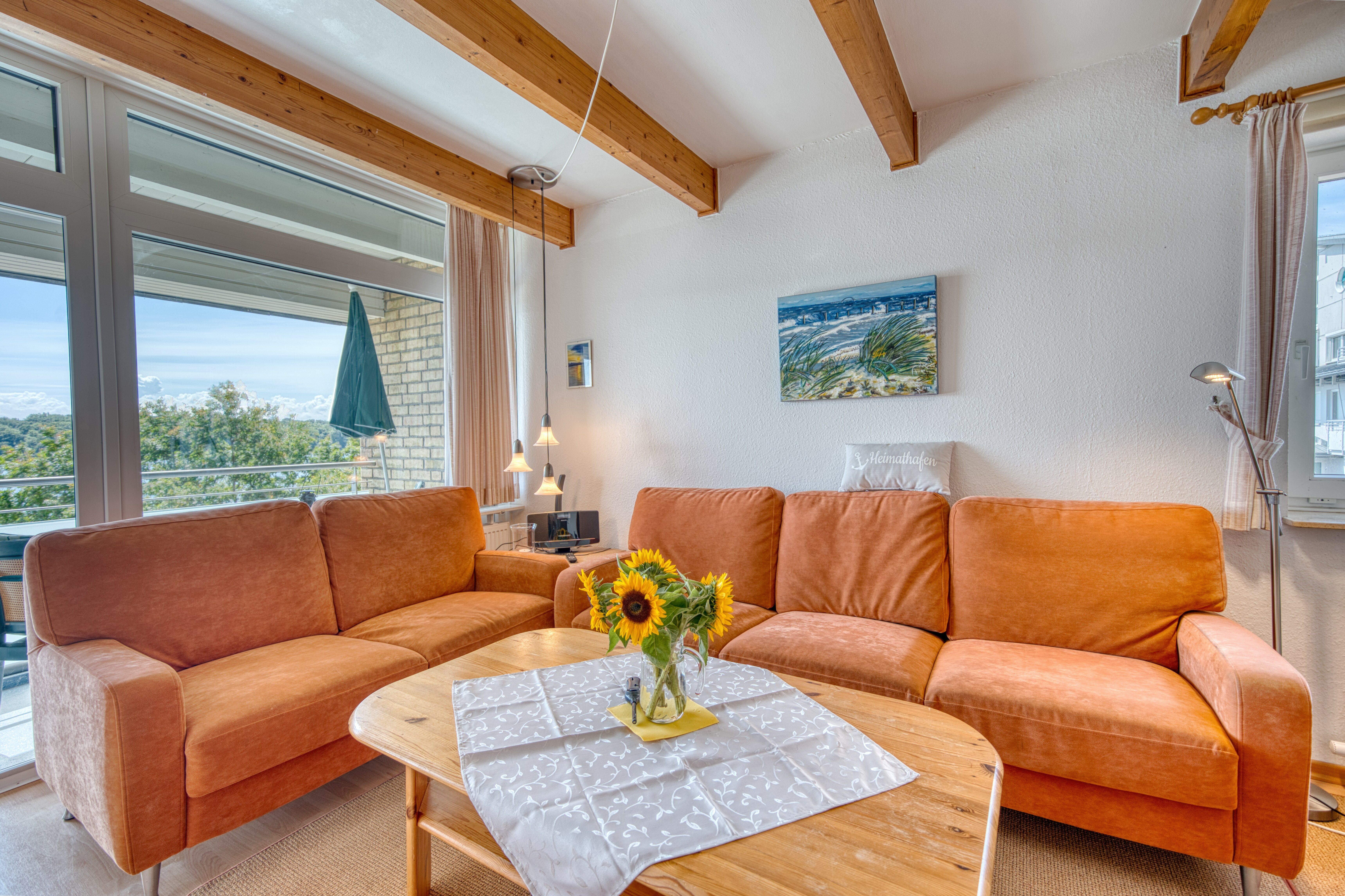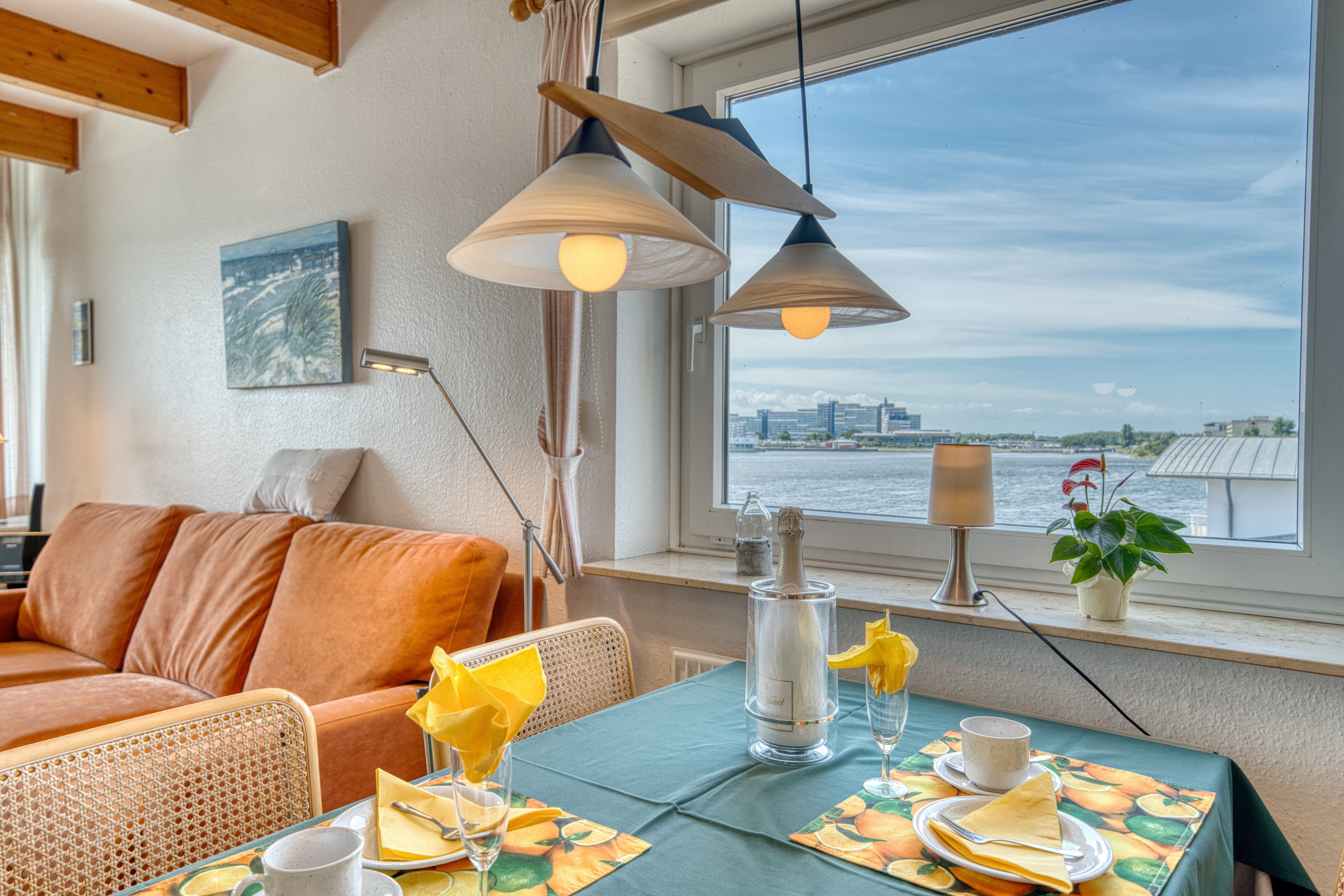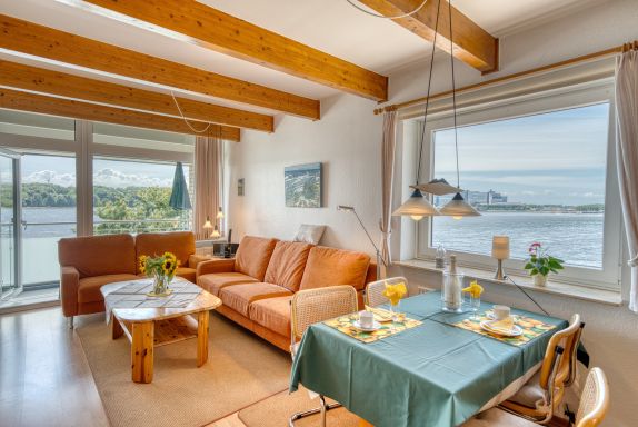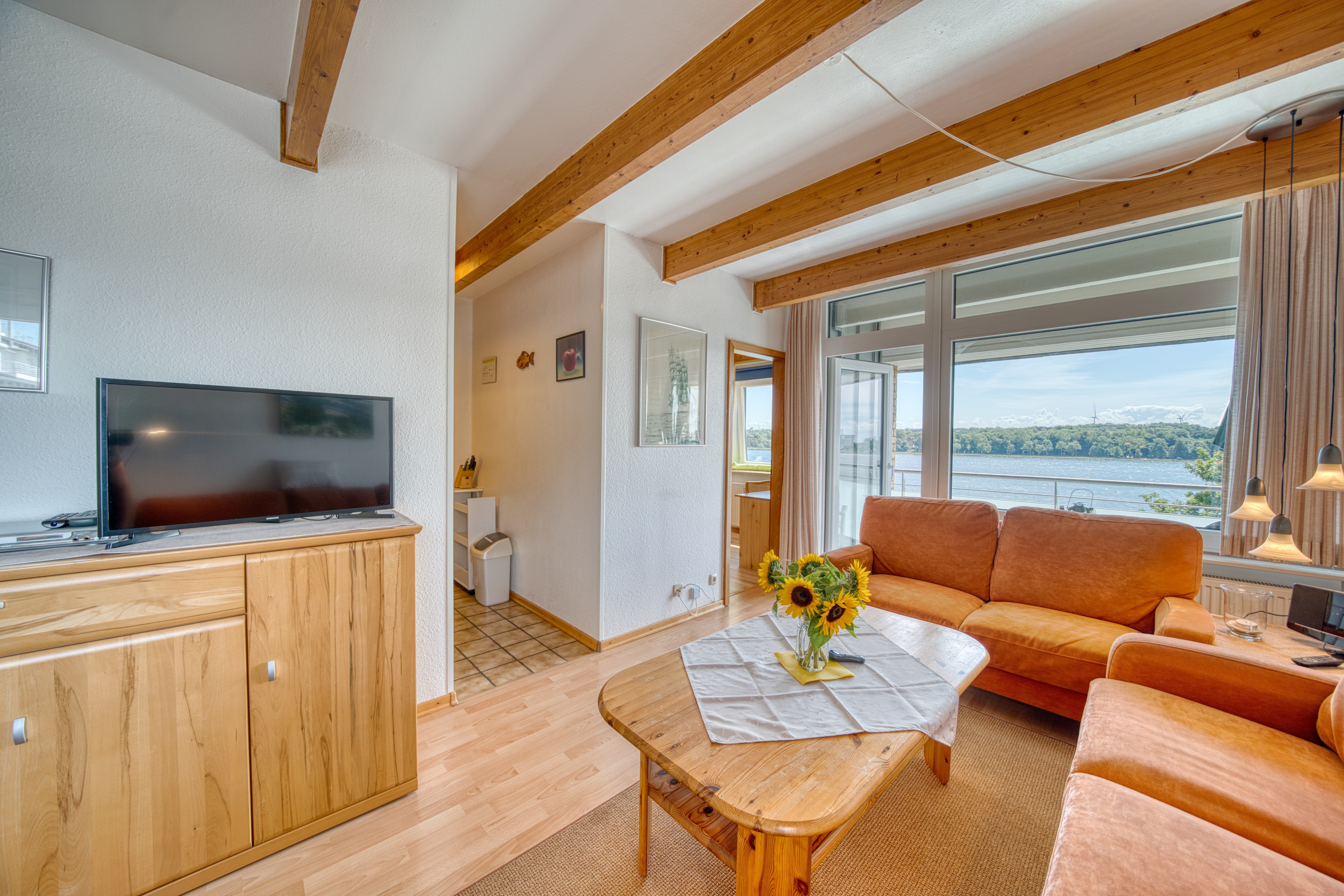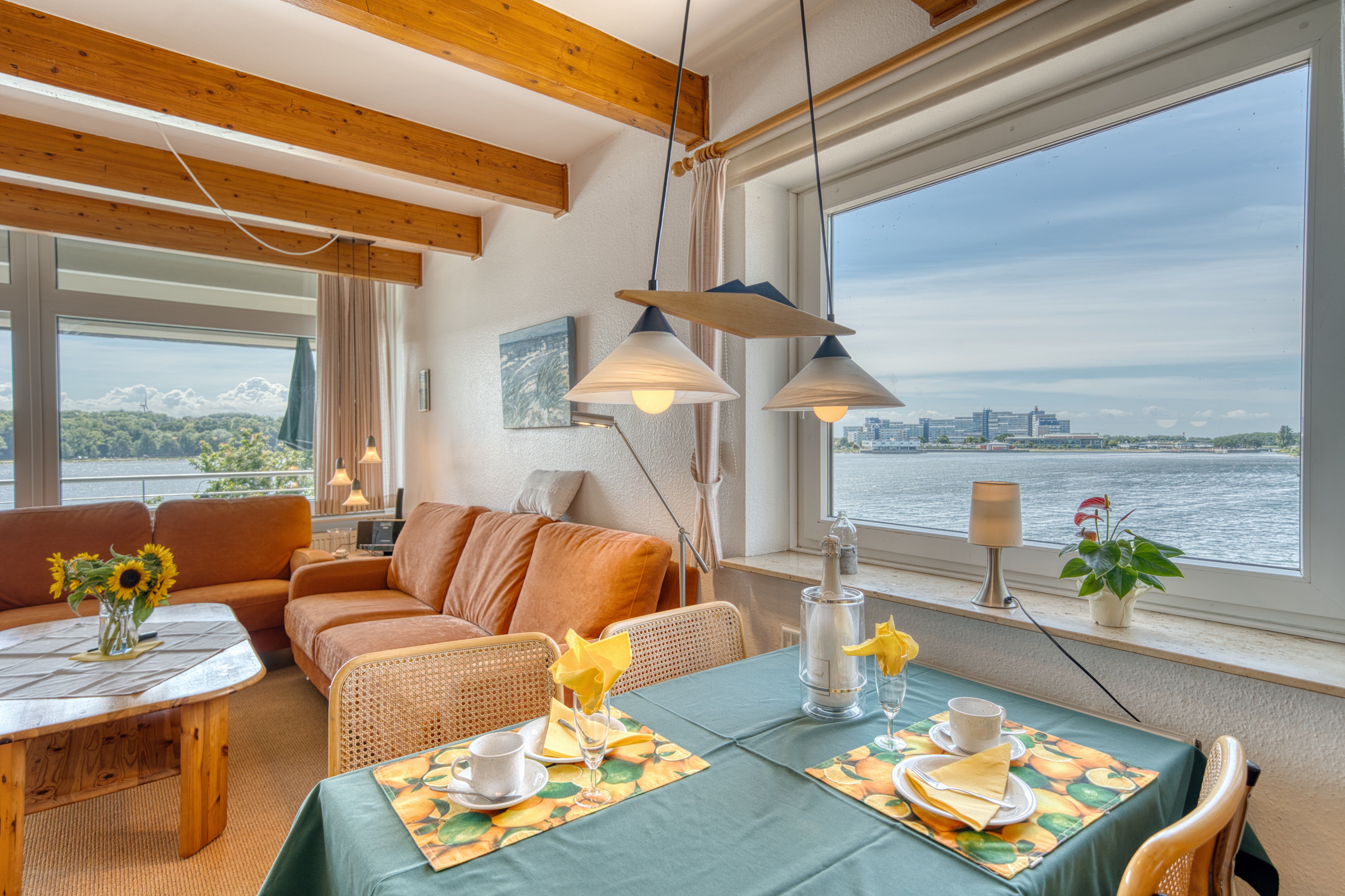 Wohnzimmer mit Seeblick und gemütlicher Ausstattung