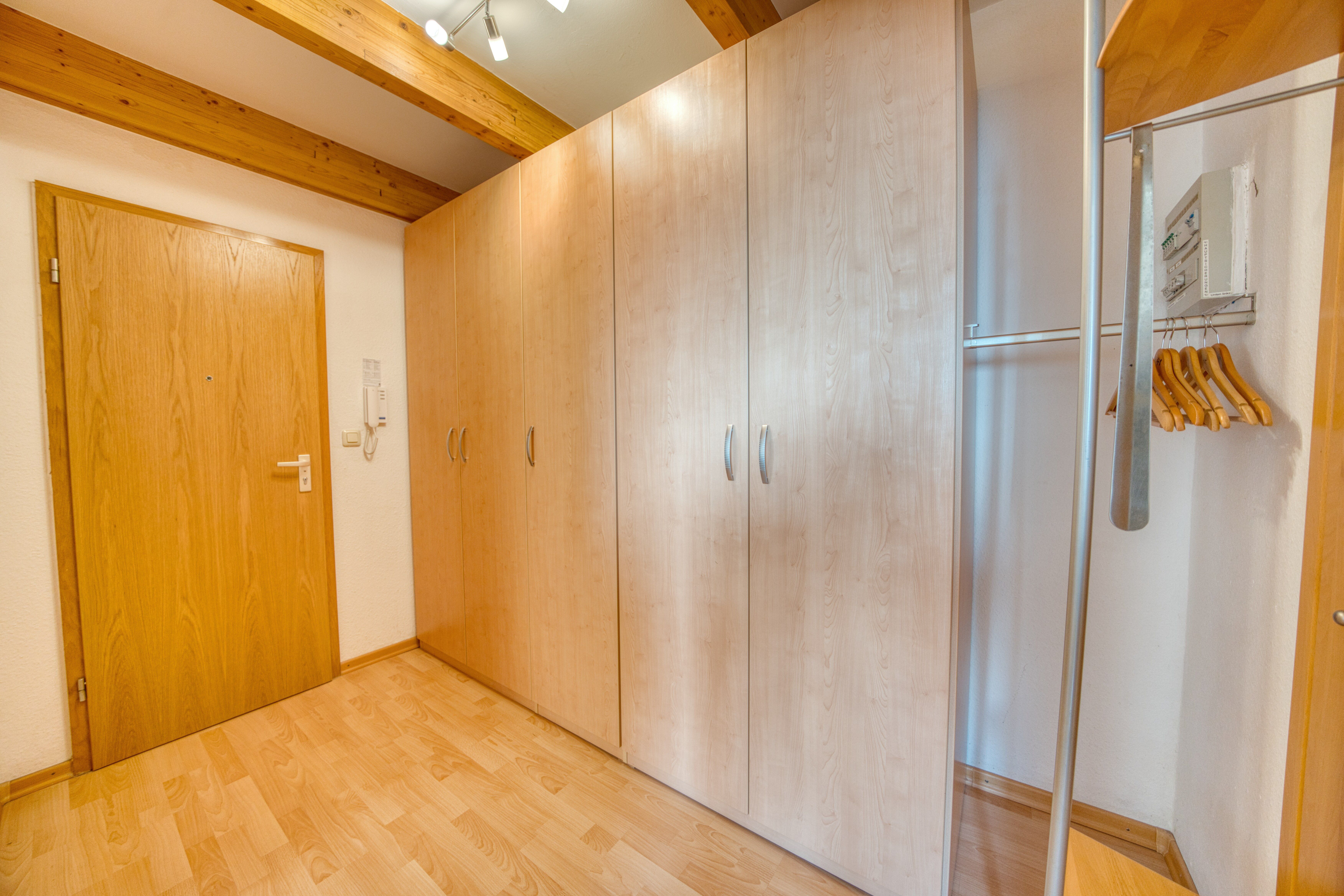 Praktischer Flur mit geräumigem Kleiderschrank für Ihr Gepäck