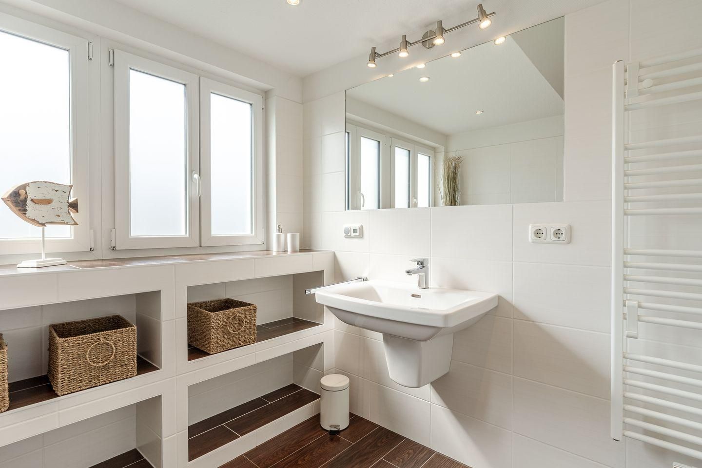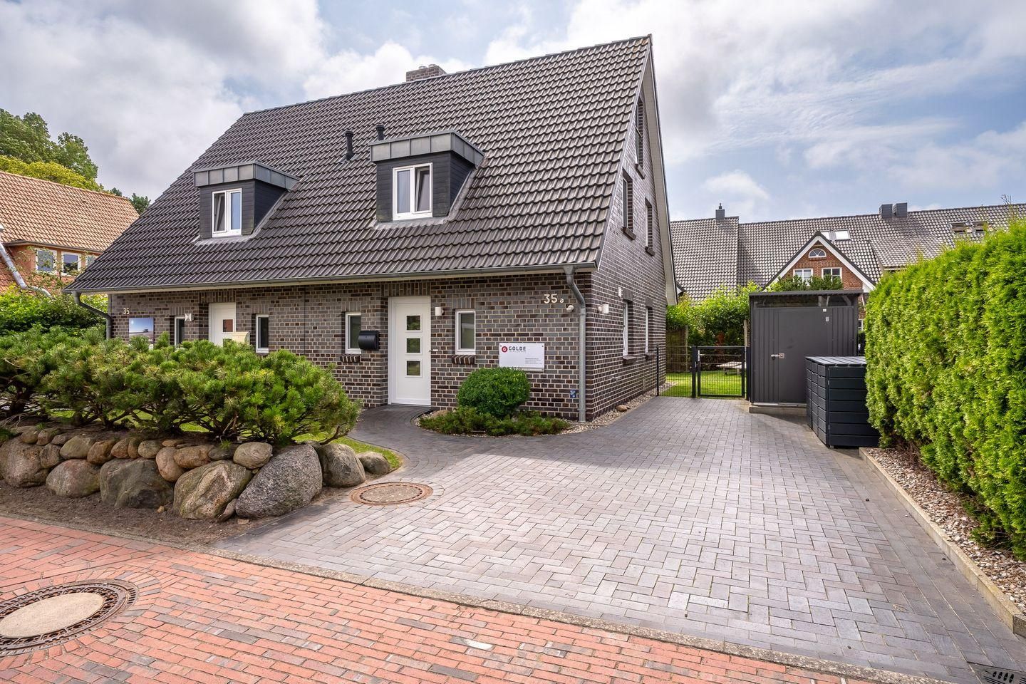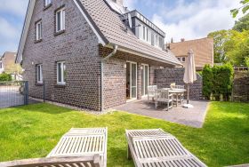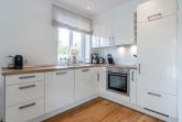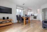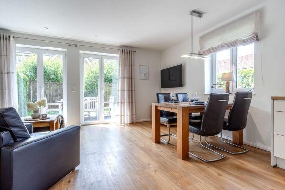 Im Erdgeschoss erwartet Sie ein Wohn- und Essbereich mit einem einladenden Specksteinofen und einer modernen offenen Küche. Zusätzlich verfügt das Erdgeschoss über ein Gästebad mit einer ebenerdigen Dusche. Von hier aus können Sie direkt auf die sonnige Süd-Terrasse treten, die mit edlen Gartenmöbeln aus Teak-Holz ausgestattet ist – der perfekte Ort, um die Sonne zu genießen.