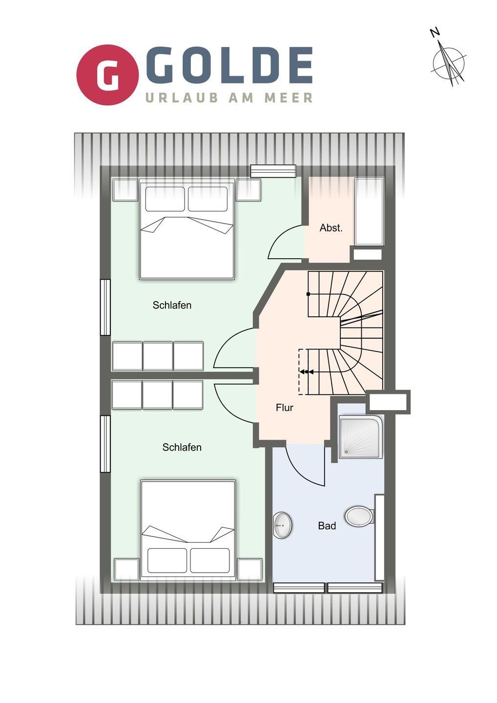 Im ersten Obergeschoss erwarten Sie zwei gemütliche Schlafzimmer mit Verdunklungsvorhängen sowie ein geräumiges Badezimmer mit Dusche und Fußbodenheizung für höchsten Komfort. Im zweiten Obergeschoss finden Sie einen weiteren Raum, der ideal als zusätzliches Schlafzimmer genutzt werden kann. Ausgestattet ist das Haus mit einem Smart-TV und einem weiteren Fernseher im großen Schlafzimmer sowie WLAN und Insektenschutzgittern für ungestörte Nächte.