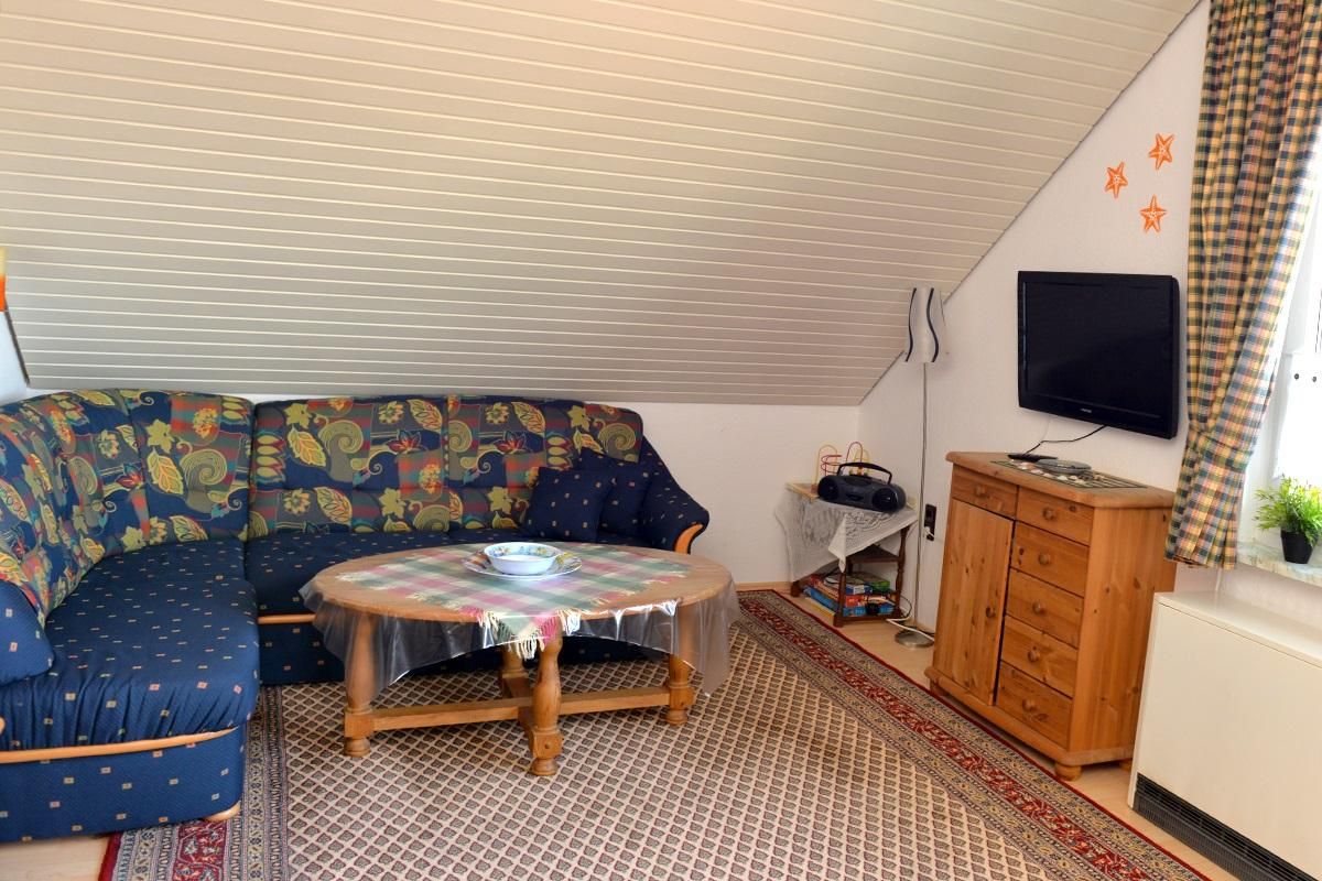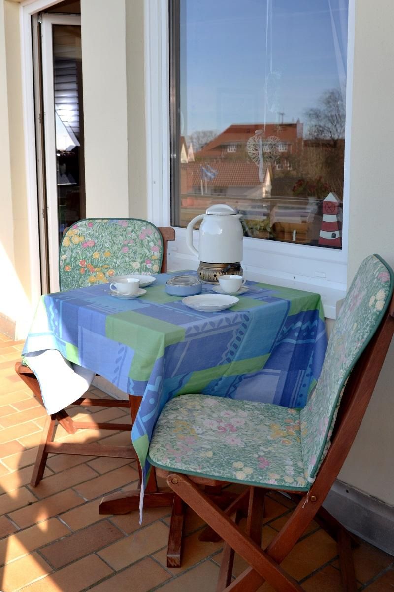 Die 46 qm große Ferienwohnung C21 liegt im Dachgeschoss der Wohnanlage Deichgraf-Burhave und ist für bis zu 4 Personen ausgestattet. Sie verfügt über ein Wohn-/Esszimmer mit Fernseher, Esstisch und einer Schlafcouch für eine Person sowie eine separate Küche mit 4-Plattenherd, Backofen, Kühlschrank, Mikrowelle, Wasserkocher, Kaffeemaschine, Eierkocher, Toaster und ausreichend Geschirr. Zudem befinden sich in der Wohnung 2 separate Schlafzimmer, eins mit Doppelbett und eins mit ausziehbarem Bett. Zur Wohnung gehört außerdem ein Bad mit Dusche und WC sowie ein schöner Balkon. Dieser ist vom Wohn-/Esszimmer aus zugänglich und mit Tisch und Stühlen ausgestattet. Den Gästen steht kostenfreies WLAN zur Verfügung. Haustiere sind erlaubt (gg. Gebühr von einmalig 25,00 €).