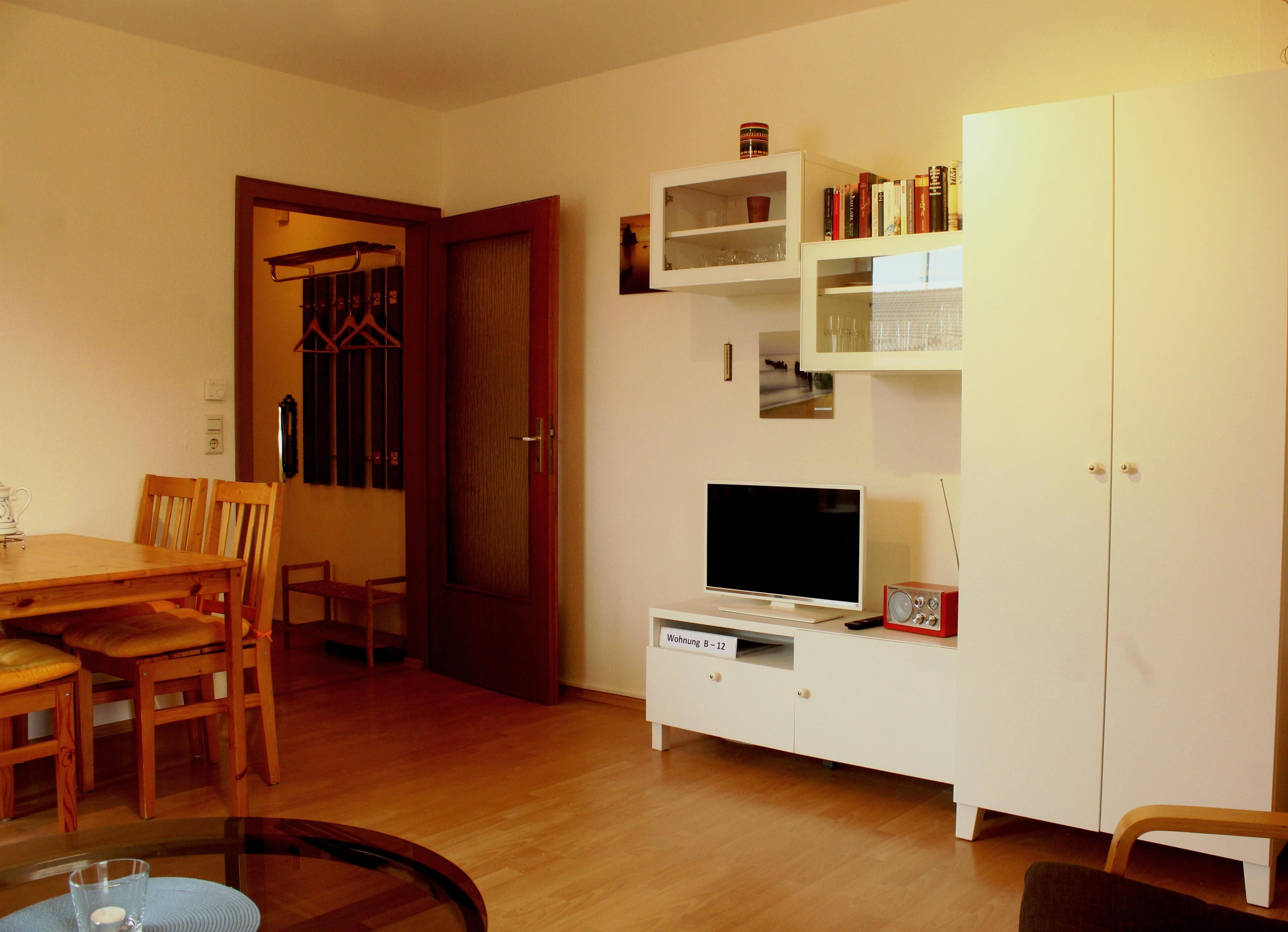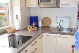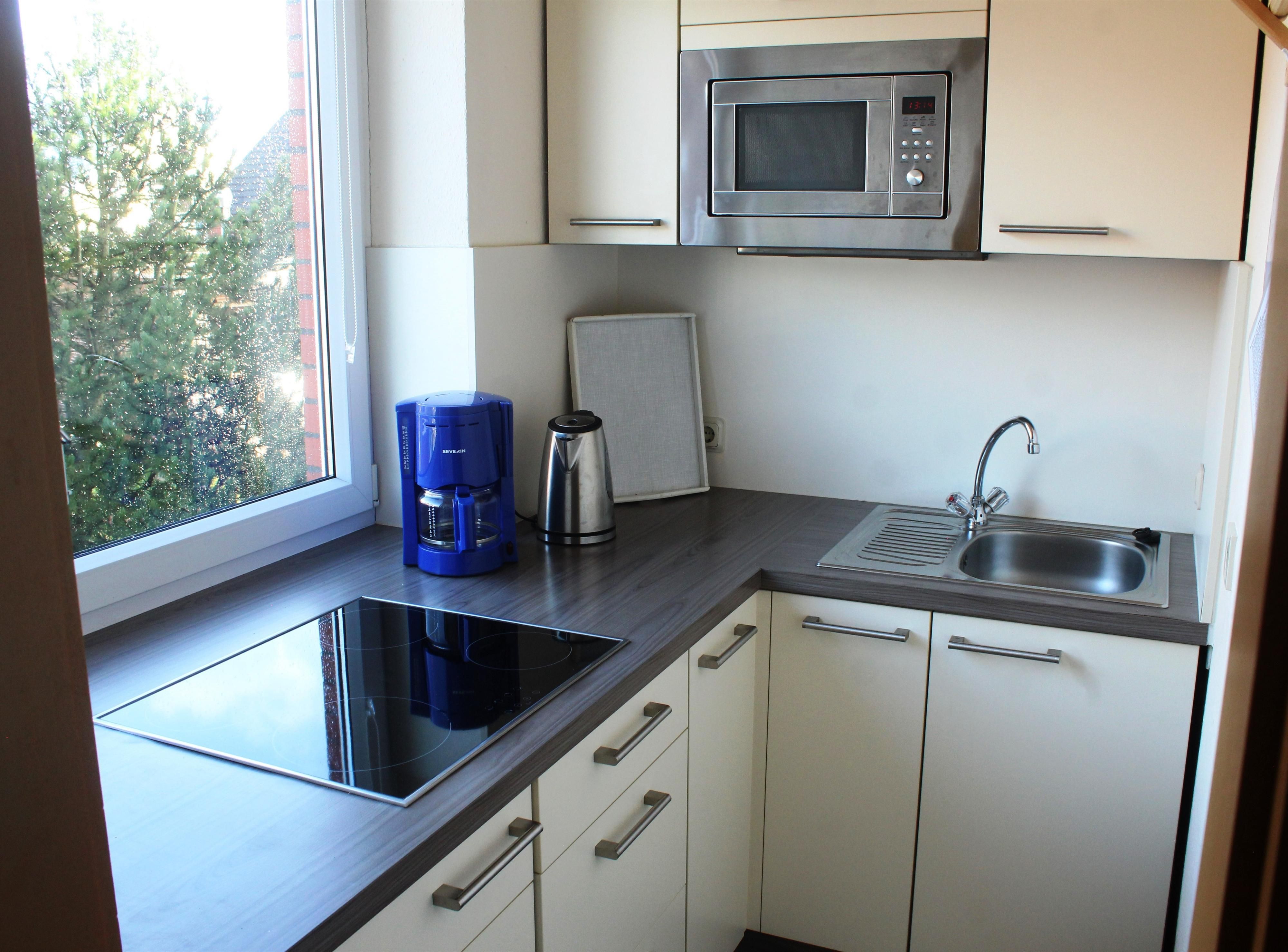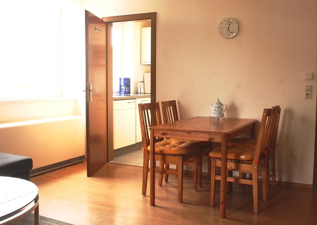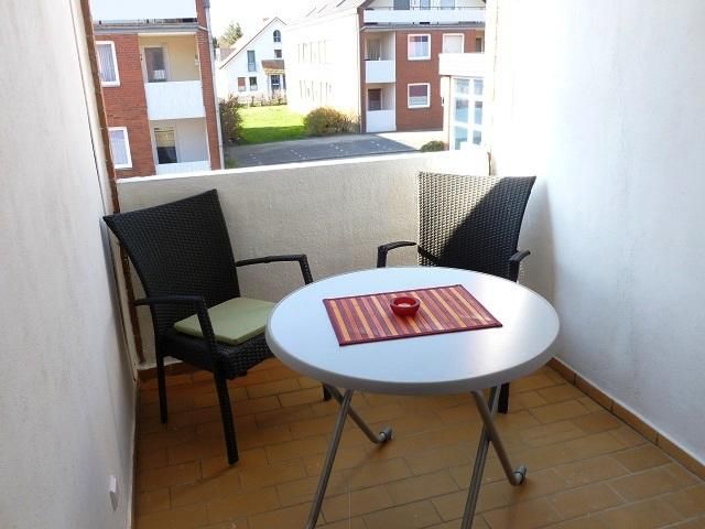 Die 36 qm große Ferienwohnung B12 liegt in der 1. Etage der Wohnanlage Deichgraf-Burhave und ist für bis zu 3 Personen ausgestattet. Sie verfügt über ein Wohn-/Esszimmer mit Fernseher, Esstisch und einer Schlafcouch für die 3. Person sowie eine separate Küche mit Ceranfeld, Backofen, Kühlschrank mit Eisfach, Mikrowelle, Wasserkocher, Kaffeemaschine, Eierkocher, Toaster und ausreichend Geschirr. Zudem befindet sich in der Wohnung ein separates Schlafzimmer mit 2 Einzelbetten (0,80 x 2,00m) sowie ein Bad mit Dusche und WC. Zur Wohnung gehört außerdem ein schöner Balkon. Dieser ist vom Wohn-/Esszimmer aus zugänglich und mit Tisch und Stühlen ausgestattet. Den Gästen steht kostenfreies WLAN zur Verfügung. Haustiere sind erlaubt (gg. Gebühr von einmalig 25,00 €).