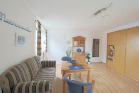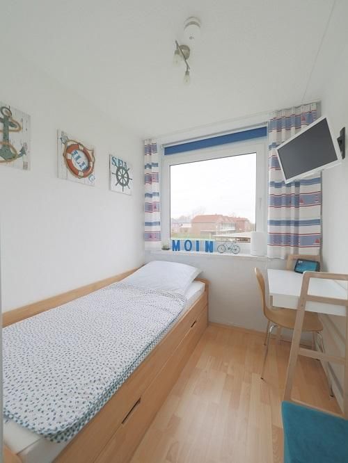 Die 36 qm große Ferienwohnung A18 liegt in der 1. Etage der Wohnanlage Deichgraf-Burhave und ist für bis zu 3 Personen ausgestattet. Sie verfügt über ein Wohn-/Ess-/Schlafzimmer mit Schrankbett, Fernseher und Esstisch sowie eine separate Küche mit Ceranfeld, Backofen, Kühlschrank mit Eisfach, Mikrowelle, Wasserkocher, Kaffeemaschine, Eierkocher, Toaster und ausreichend Geschirr. Zudem befindet sich in der Wohnung ein separates Schlafzimmer mit einem Einzelbett sowie ein Bad mit Dusche und WC. Zur Wohnung gehört außerdem ein schöner Balkon. Dieser ist vom Wohn-/Esszimmer aus zugänglich und mit Tisch und Stühlen ausgestattet. Den Gästen steht kostenfreies WLAN zur Verfügung. Haustiere sind nicht gestattet.