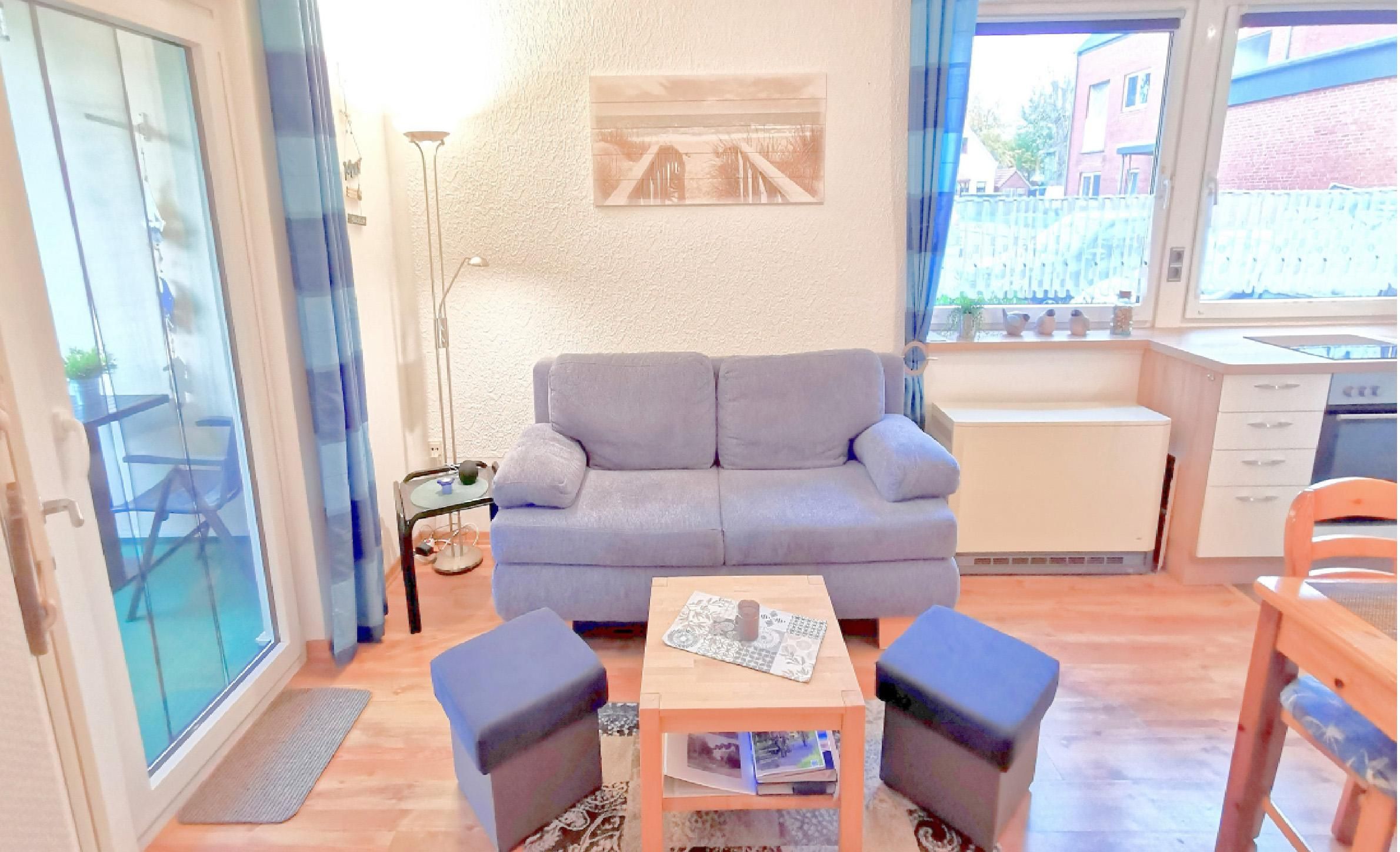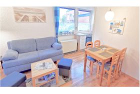 Die 36 qm große Ferienwohnung A8 liegt im Erdgeschoss der Wohnanlage Deichgraf-Burhave und ist für bis zu 3 Personen ausgestattet. Sie verfügt über ein Wohn-/Esszimmer mit Fernseher, Esstisch und eine Schlafcouch für eine Person sowie eine separate Küche mit Ceranfeld, Backofen, Kühlschrank mit Eisfach, Mikrowelle, Wasserkocher, Kaffeemaschine, Eierkocher, Toaster und ausreichend Geschirr. Zudem befindet sich in der Wohnung ein separates Schlafzimmer mit Doppelbett (1,60 x 2,00m) und Kleiderschrank sowie ein Bad mit Dusche (elektronischer Durchlauferhitzer, von außen einstellbar) und WC. Zur Wohnung gehört außerdem ein schöner Balkon. Dieser ist vom Wohn-/Esszimmer aus zugänglich und mit Tisch und Stühlen ausgestattet. Den Gästen steht kostenfreies WLAN zur Verfügung. Haustiere sind nicht gestattet.