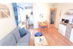 Die 36 qm große Ferienwohnung A8 liegt im Erdgeschoss der Wohnanlage Deichgraf-Burhave und ist für bis zu 3 Personen ausgestattet. Sie verfügt über ein Wohn-/Esszimmer mit Fernseher, Esstisch und eine Schlafcouch für eine Person sowie eine separate Küche mit Ceranfeld, Backofen, Kühlschrank mit Eisfach, Mikrowelle, Wasserkocher, Kaffeemaschine, Eierkocher, Toaster und ausreichend Geschirr. Zudem befindet sich in der Wohnung ein separates Schlafzimmer mit Doppelbett (1,60 x 2,00m) und Kleiderschrank sowie ein Bad mit Dusche (elektronischer Durchlauferhitzer, von außen einstellbar) und WC. Zur Wohnung gehört außerdem ein schöner Balkon. Dieser ist vom Wohn-/Esszimmer aus zugänglich und mit Tisch und Stühlen ausgestattet. Den Gästen steht kostenfreies WLAN zur Verfügung. Haustiere sind nicht gestattet.