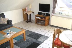 Die 54 qm große Ferienwohnung C25 liegt im Dachgeschoss der Wohnanlage Deichgraf-Burhave und ist für bis zu 5 Personen ausgestattet. Sie verfügt über ein Wohn-/Esszimmer mit einer großen Couch, Fernseher und Esstisch sowie eine separate Küche mit 4-Plattenherd, Backofen, Kühlschrank mit Eisfach, Mikrowelle, Wasserkocher, Kaffeemaschine, Eierkocher, Toaster und ausreichend Geschirr. Zudem befinden sich in der Wohnung 2 separate Schlafzimmer, eins mit Doppelbett (2x 1,00m x 2,00m) und Kleiderschrank und eins mit 3 Einzelbetten (je 0,90 x 2,00m) und Kleiderschrank. Zur Wohnung gehört außerdem ein großes Bad mit Dusche (elektronischer Durchlauferhitzer, von außen einstellbar) und WC sowie ein schöner Balkon. Dieser ist vom Wohn-/Esszimmer aus zugänglich und mit Tisch und Stühlen ausgestattet. Den Gästen steht kostenfreies WLAN zur Verfügung. 1 Haustier ist erlaubt.