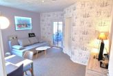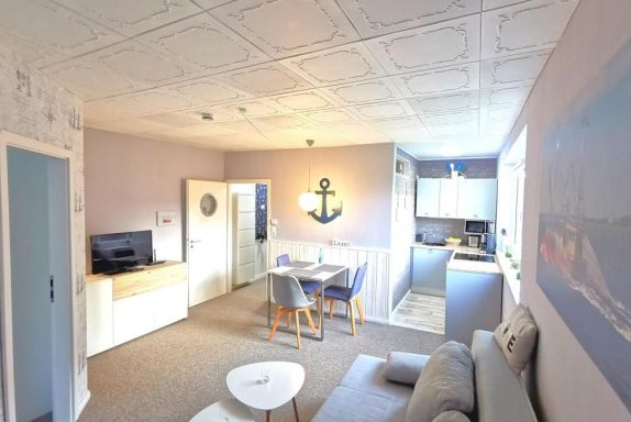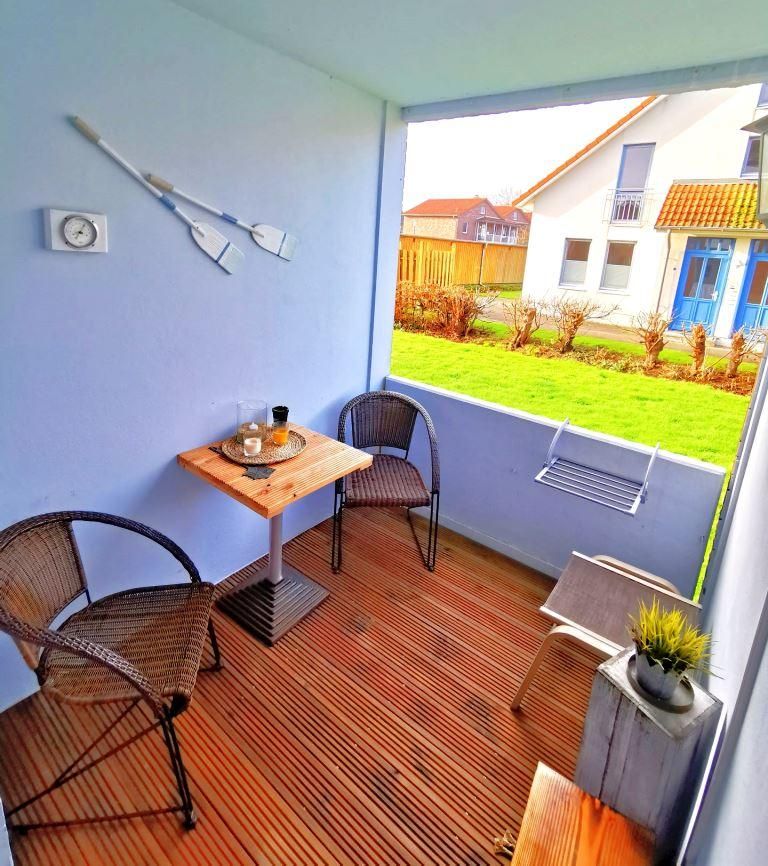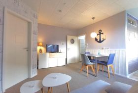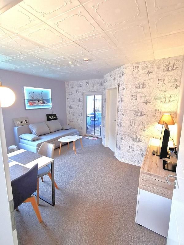Die 36 qm große Ferienwohnung C3 liegt im Erdgeschoss der Wohnanlage Deichgraf-Burhave und ist für bis zu 3 Personen ausgestattet. Sie verfügt über ein Wohn-/Esszimmer mit Fernseher, Esstisch und einer Schlafcouch für die 3. Person sowie eine separate Küche mit Ceranfeld, Backofen, Kühlschrank mit Eisfach, Wasserkocher, Kaffeemaschine und ausreichend Geschirr. Zudem befindet sich in der Wohnung ein separates Schlafzimmer mit Doppelbett (1,60 x 2,00m) sowie ein Bad mit Waschmaschine, Dusche und WC. Zur Wohnung gehört außerdem ein schöner Balkon. Dieser ist vom Wohn-/Esszimmer aus zugänglich und mit Tisch und Stühlen ausgestattet. Den Gästen steht kostenfreies WLAN zur Verfügung. Haustiere sind nicht gestattet.