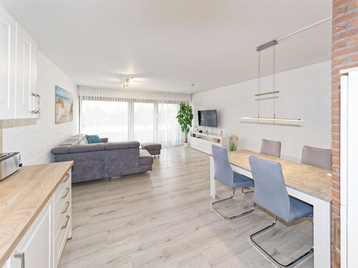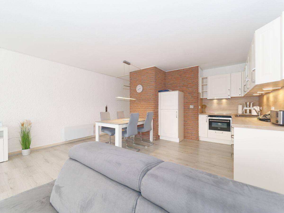 Die Ferienwohnung 24 befindet sich im 2. OG der Appartementanlage Albatros und ist für bis zu 4 Personen (2 Erwachsene + 2 Kinder oder 3 Erwachsene) ausgestattet. Sie verfügt über ein großzügiges Wohnzimmer mit Sitzecke, Fernseher sowie eine Wohnküche, ausgestattet mit Ceran-Kochfeld, Backofen, Mikrowelle, Kühlschrank mit Gefrierfach, Waschmaschine, Geschirrspüler, Wasserkocher, Kaffeemaschine, Toaster, Eierkocher, Mixer und einem gemütlichen Essbereich. Zudem befinden sich in der Wohnung 2 separate Schlafzimmer, eins mit Doppelbett und eins mit 2 Einzelbetten sowie ein komfortables Bad mit bodengleicher Dusche und WC. Zur Wohnung gehört außerdem ein schöner Balkon mit Tisch und Stühlen und Sonnenschirm. Balkonseitig verfügt die Wohnung über elektrische Außenrolladen. Ein Kinderreisebett, sowie WLAN steht Ihnen kostenfrei zur Verfügung. Einen PKW-Stellplatz finden Sie in der hauseigenen Tiefgarage mit direktem Fahrstuhlzugang.