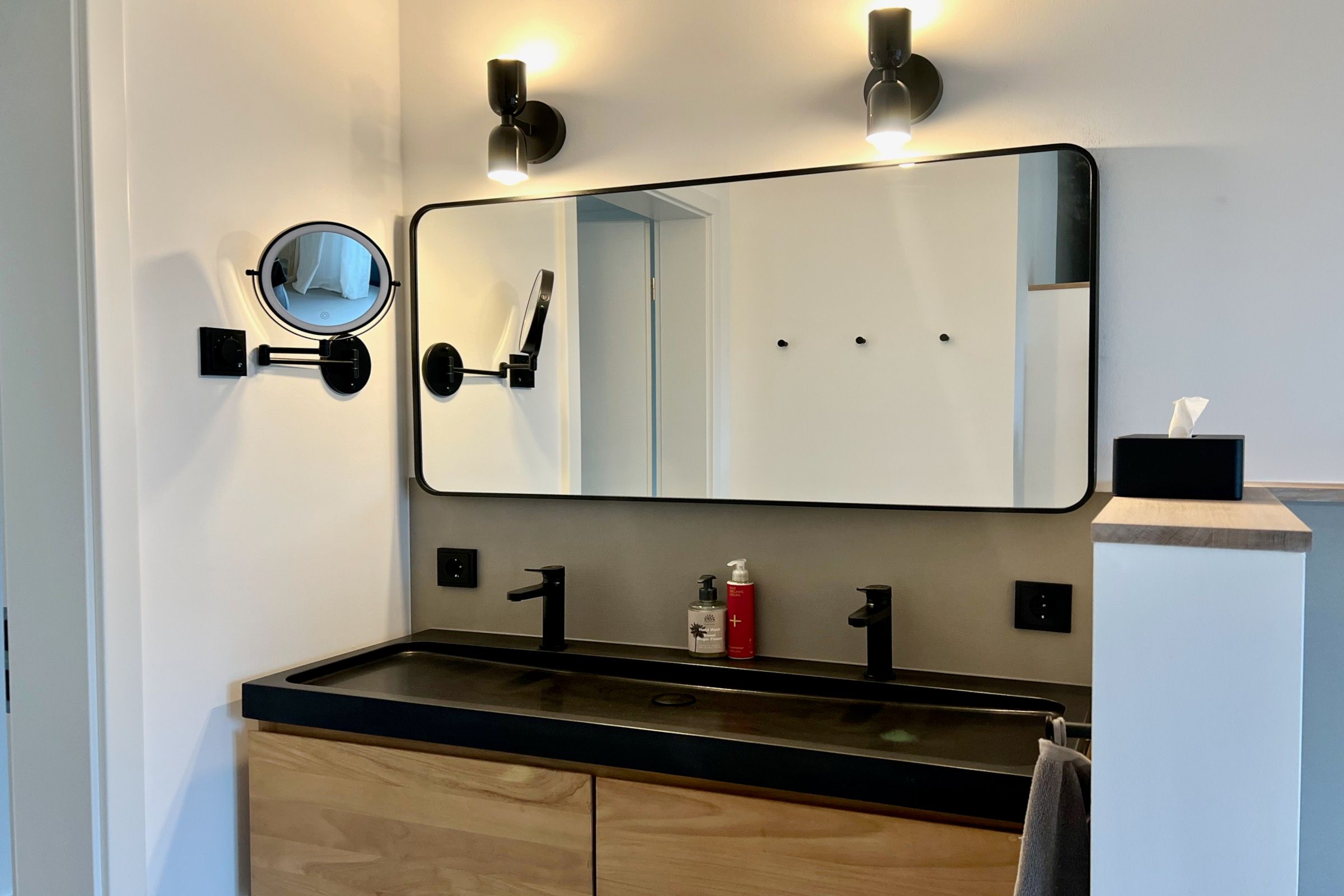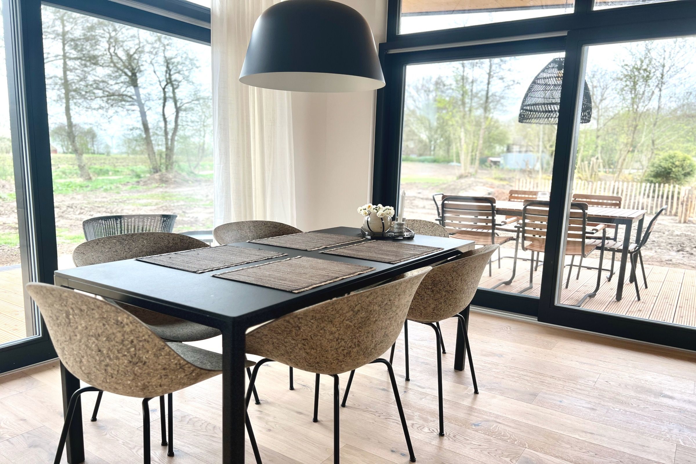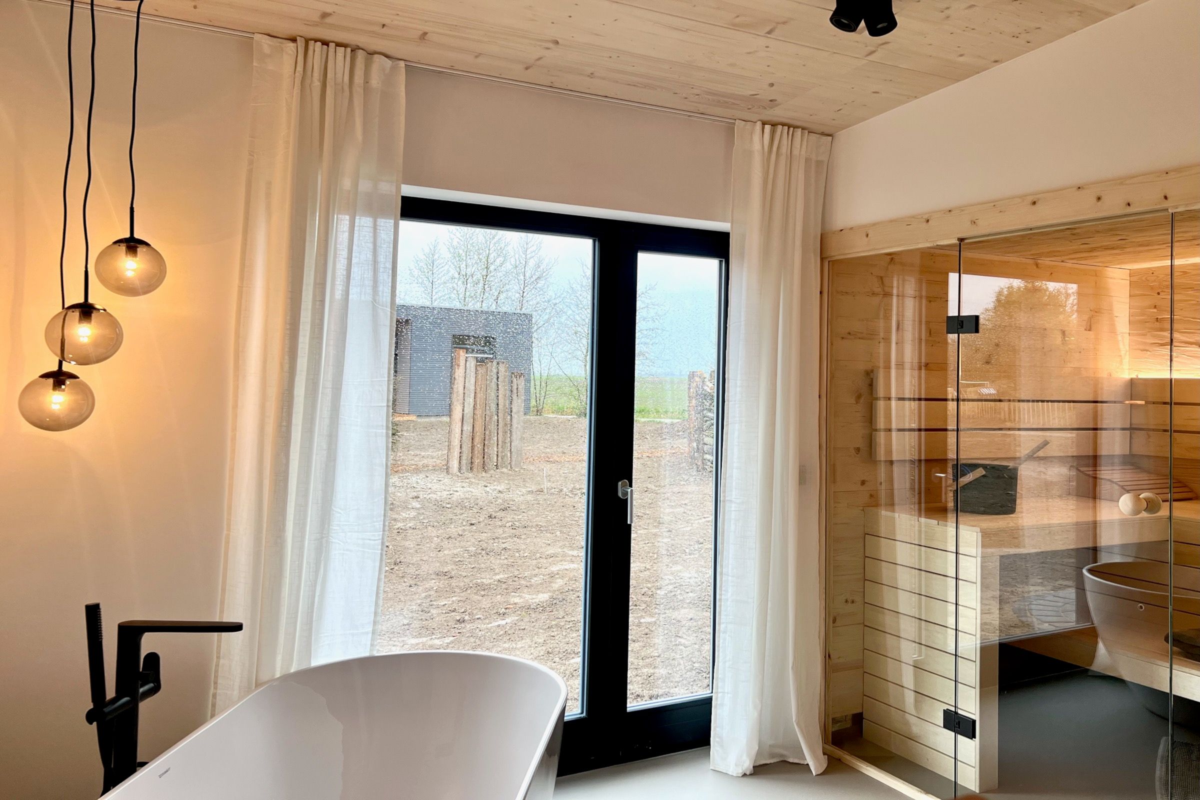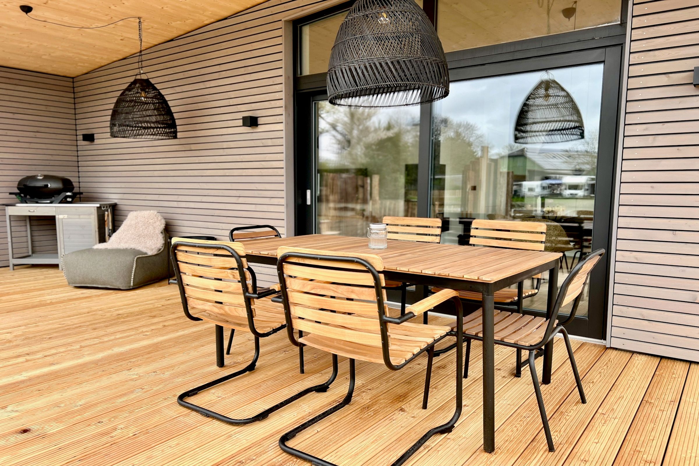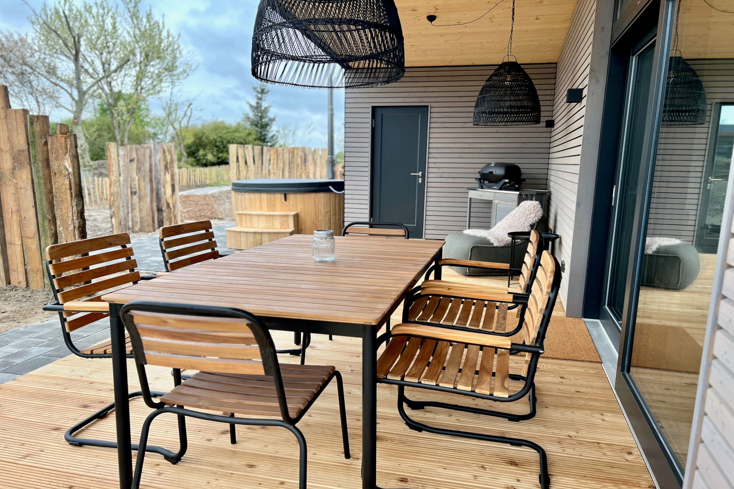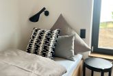 Moderne Architektur und Design trifft auf Natur Nur 50 Meter vom Hof entfernt liegt dieses 2025 zu Ostern fertiggestellte Designhaus mit eigenem Strand. Auf 100 m² Wohnfläche bietet es Komfort und einen besonderen Charme von Entspannung und Leichtigkeit durch die schwarz-weiße gewählte Einrichtung, kombiniert mit natürlichen Elementen. Zwei Schlafzimmer für 4-5 Personen, große Fenster mit weitem Blick und überdachte Terrassen schaffen einen idealen Rückzugsort. Der großzügige Wohn- und Essbereich mit Kamin und die voll ausgestattete Küche mit Weinkühlschrank laden zum Verweilen ein. Ein Wellnessbad mit freistehender Badewanne, Panoramablick und Sauna sowie ein Außenbereich mit Hot Tub und Außendusche sorgen für Entspannung pur. Ein Ort, der Ruhe, Natur und Stil vereint – perfekt zum Abschalten!