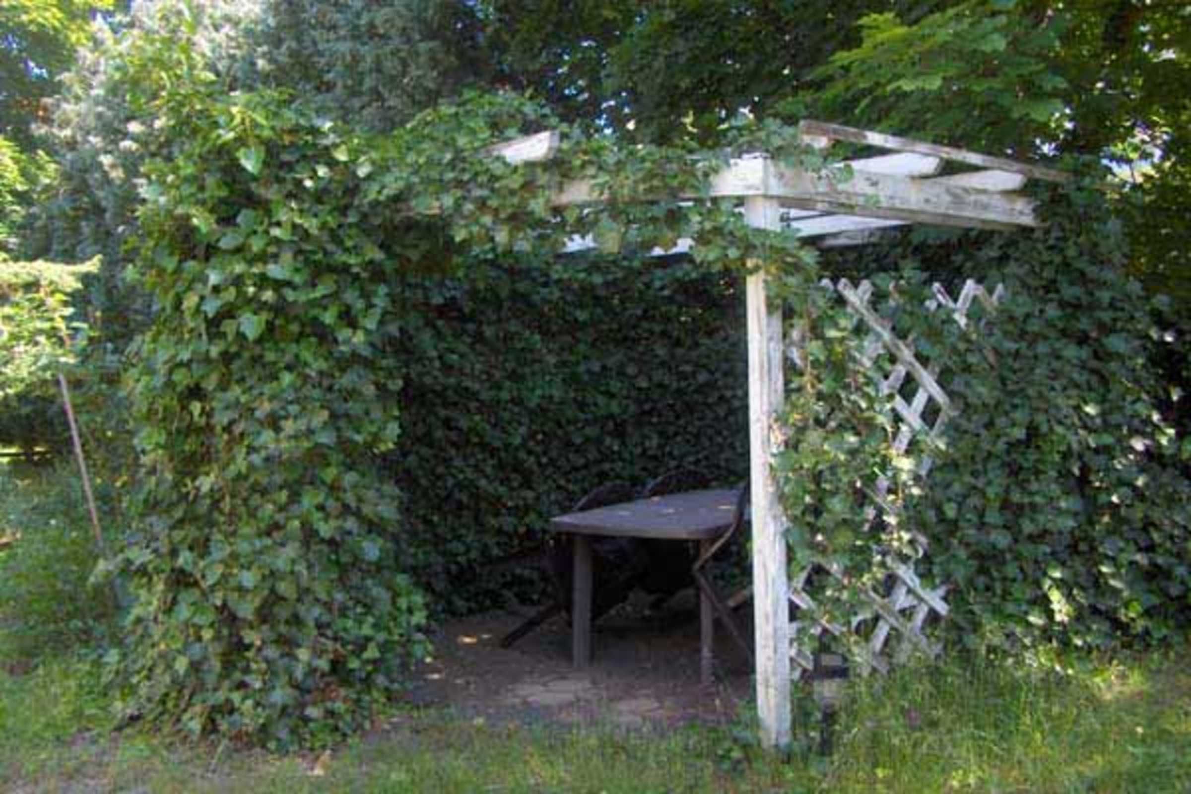 Wohnzimmer mit Esstisch, Kochniesche, 2-Platten-Ceran-Feld mit Backröhre, Wasserkocher, Kaffeemaschine, Toaster, Schlafzimmer mit Doppelbett und Einzelbett, Bad mit Dusche, Sitzecke mit Grill im Garten, Parkplatz auf Grundstück, Bettwäsche, Geschirrtuch und Nebenkosten (Strom, Wasser) im Preis enthalten