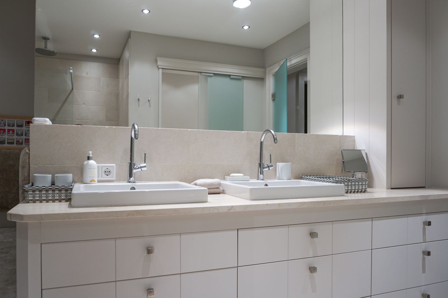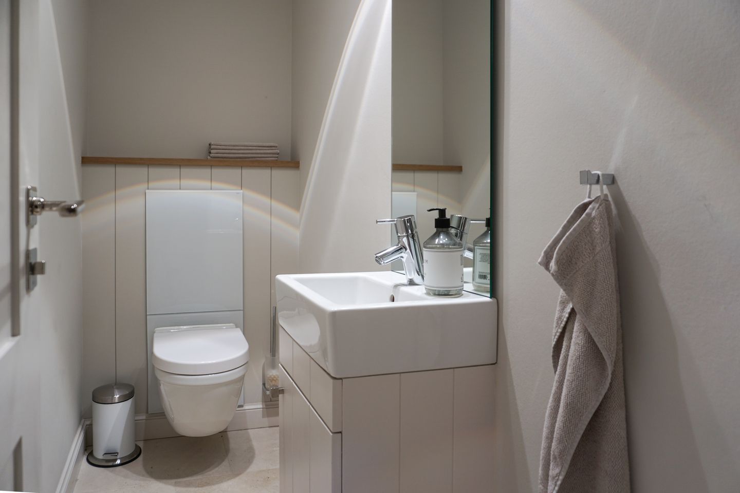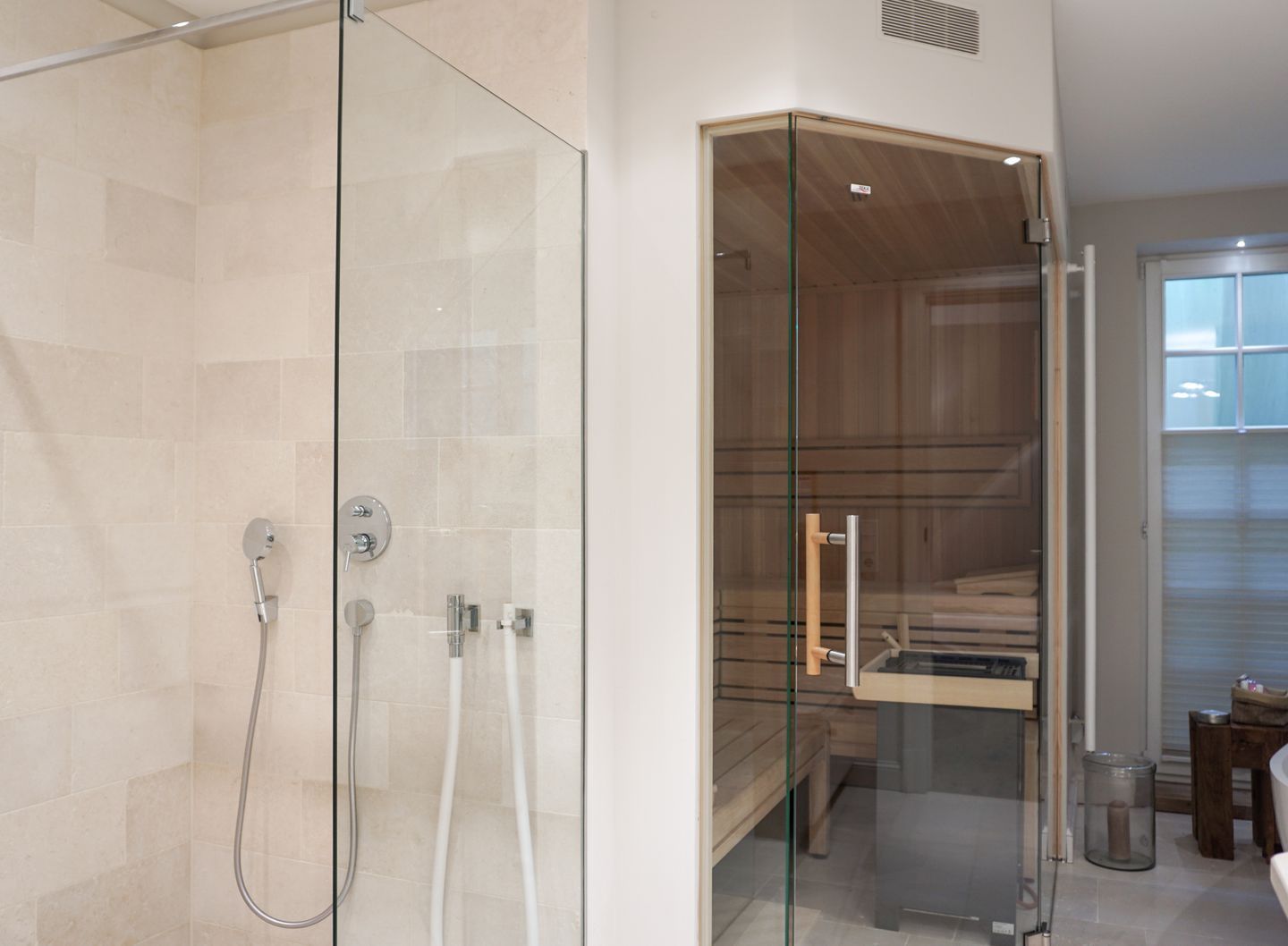 Das Haus bietet drei moderne Badezimmer, die jeweils über eine bodengleiche Dusche verfügen. Zusätzlich gibt es zwei Gäste-WCs. Für Komfort sorgen eine Badewanne und eine Sauna zur Eigennutzung, die entspannende Stunden verspricht. Die Bäder sind teilweise mit Kosmetikspiegel, Ganzkörperspiegel ausgestattet. Handtücher, Bettwäsche, eine Erstausstattung an Badausstattung sowie Geschirrhandtücher werden bereitgestellt.