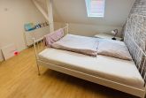 Im Obergeschoss erwarten Sie zwei gemütliche Schlafzimmer mit komfortablen Doppelbetten. Das rund 30 m² große Hauptschlafzimmer begeistert mit sichtbaren alten Balken und unvergleichlichem Charme.