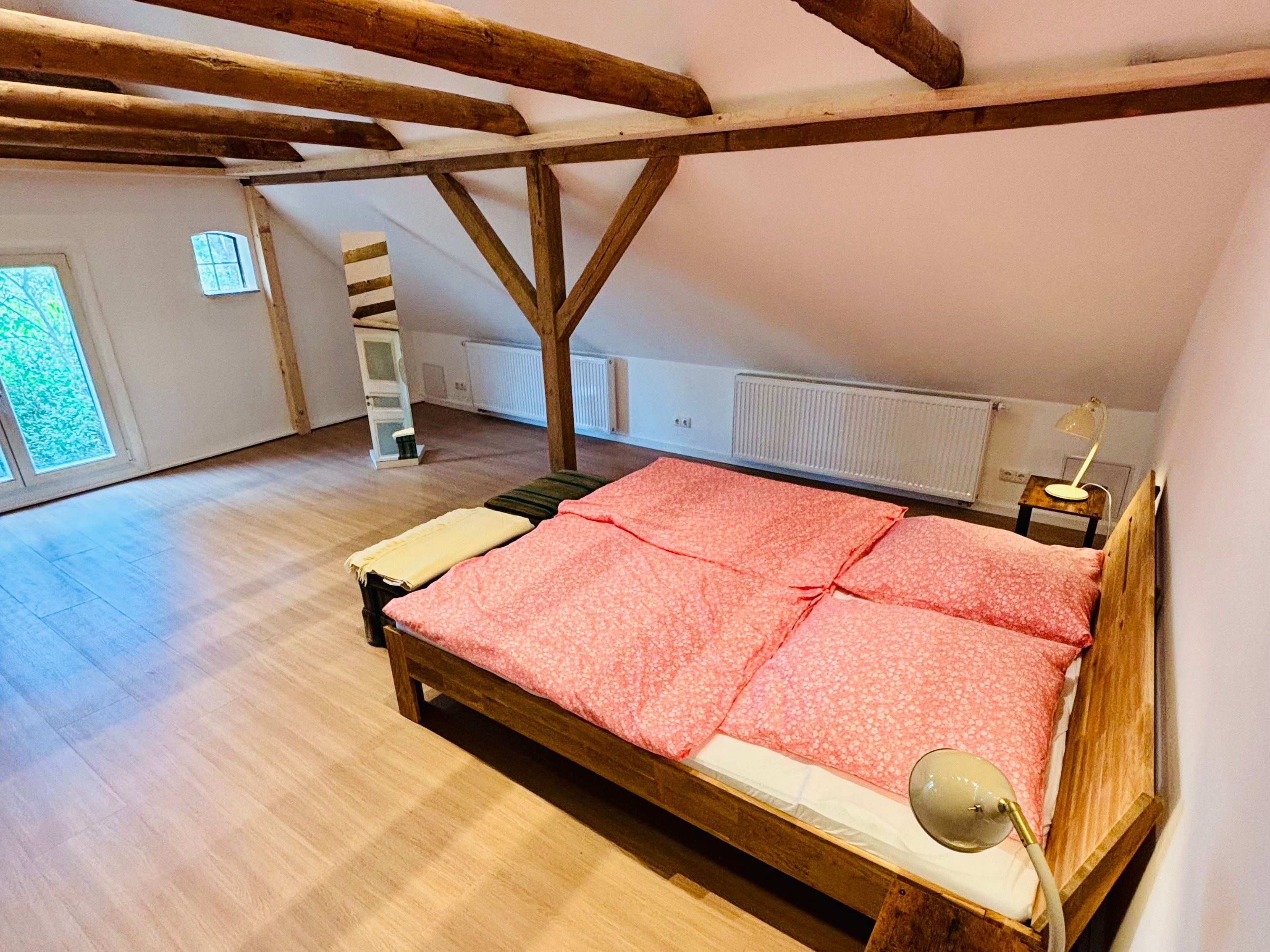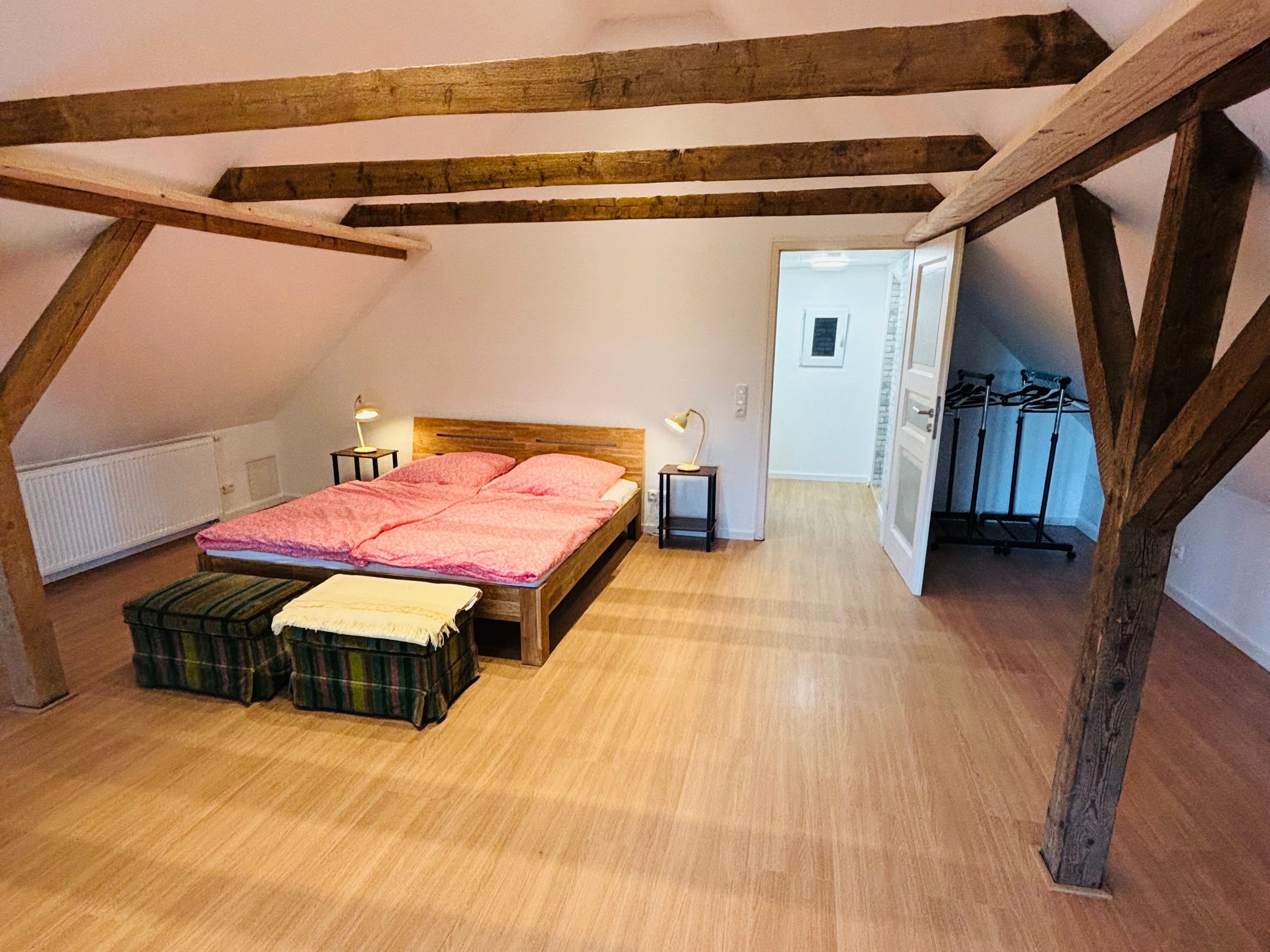 • Hauptschlafzimmer ca. 30 m² groß mit sichtbaren alten Balken