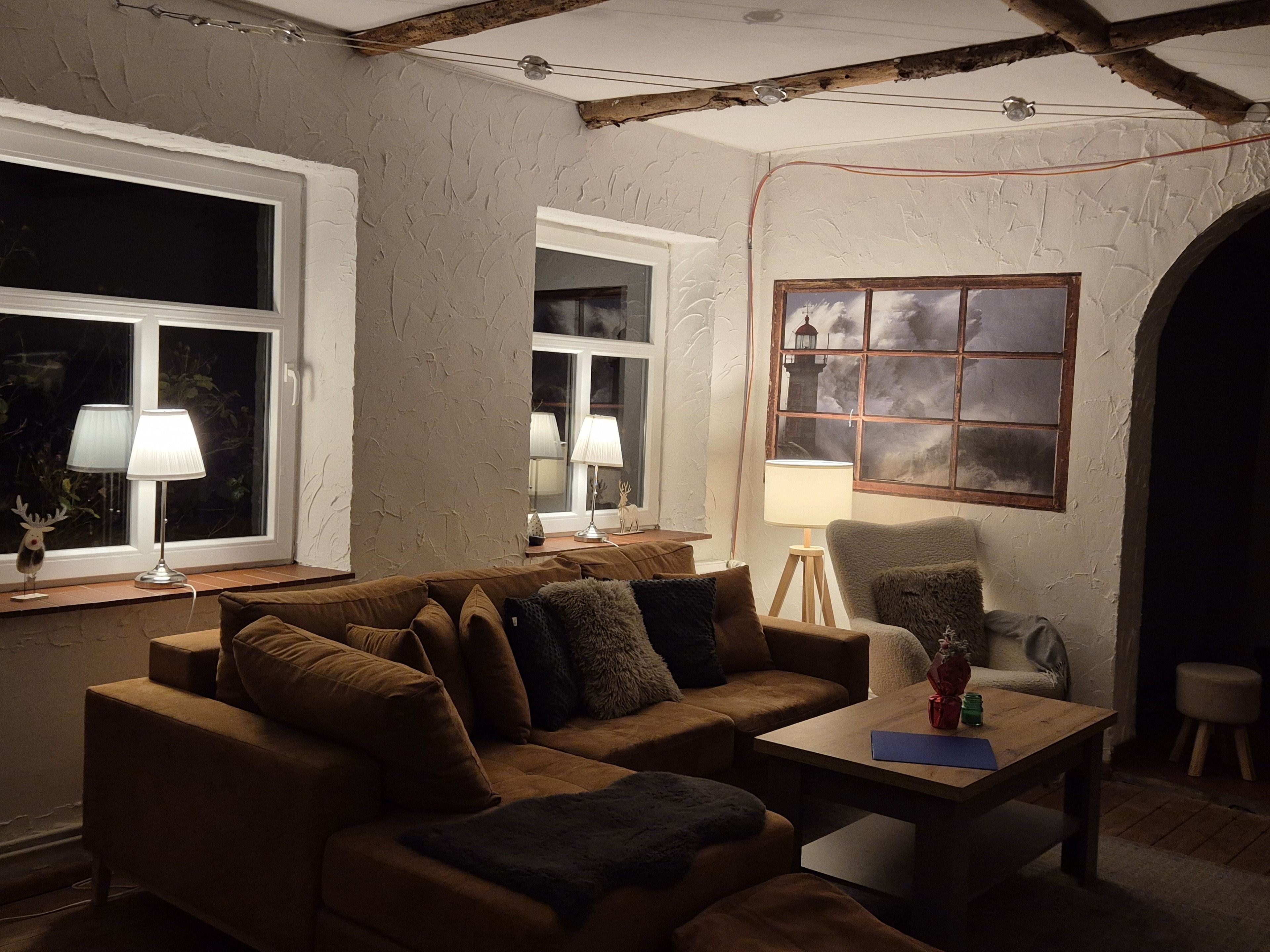 Unsere Ausstattung: Bad mit Badewanne Küche mit Herd, Backofen, Mikrowelle, Kaffemaschine, Toaster, WLAN, Radio, TV mit WaipuTV, eine Spülmaschine und eine Waschmaschine gibt es im Hauswirtschaftsraum. Sie haben einen Parkplatz direkt am Haus zur Verfügung. Hunde sind uns willkommen.