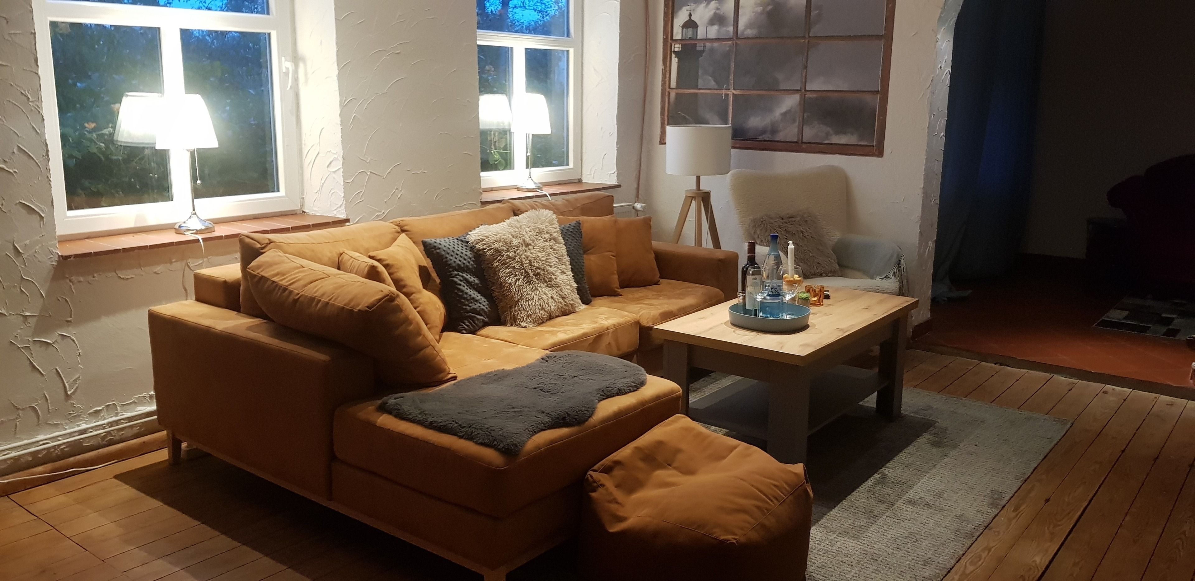 Unsere Ferienwohnung an der Ostsee. Großzügig, hell und mit einer großen zentralen Küche. Liegt im gleichen Gebäude wie der kleine Stern. Bis max 6 Personen. Hunde erlaubt.