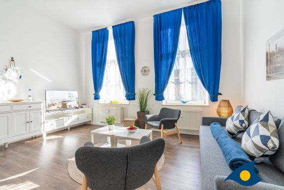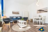 Die Wohnung besteht aus einem geräumigen Wohn- und Esszimmer (inkl. einer Aufbettungsmöglichkeit für 2 Kinder bis 10 Jahre auf der Schlafcouch) und einem separaten Schlafraum. Die separate Küche verfügt über einen Kühlschrank mit Kühlfach, einer Spülmaschine und einem Herd. Zur Ausstattung gehört außerdem ein Smart-TV.