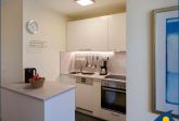 Die moderne Küche ist komplett eingerichtet und verfügt über einen Herd mit Ceranfeld und Backofen, einen Geschirrspüler, eine Kaffeemaschine, einen Wasserkocher sowie weitere elektrische Geräte. Im direkt erreichbaren Abstellraum befindet sich der große Kühlschrank mit Gefrierfach und eine Mikrowelle.