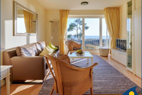 Vom Wohnzimmer aus bietet diese Wohnung über die autofreie Strandpromenade einen traumhaften Panoramablick auf die Ostsee. Als Maisonette erstreckt sich die Wohnung über zwei Etagen und ist von dem Parkplatz mit dem Aufzug bequem zu erreichen.