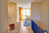 Der Eingangsbereich mit Garderobe befindet sich im zweiten Obergeschoß. Von hier aus erreicht man den Essbereich, die offene Küche, das Gäste-WC und das helle und geräumige Wohnzimmer. Das doppelflügelige Panoramafenster mit französischem Balkon lässt sich weit öffnen und erlaubt, das Meer hautnah zu genießen. Eine Schiebetür trennt das Wohnzimmer bei Bedarf vom Flur und den anderen Räumlichkeiten. Der separate Essbereich in Richtung Schloonsee verfügt über ein großes, bodentiefes Fenster mit südlicher Ausrichtung.