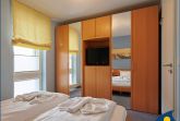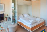 Dank dem hochwertigen und bequemen Doppelschrankbett im Wohnzimmer und dem Gäste-WC mit großem Waschtisch nebenan ist die Wohnung auch für vier Personen sehr gut geeignet.