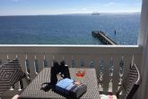 Auf dem großen Südbalkon - mit 100% Südausrichtung - genießen Sie die Sonne vom frühen Morgen bis zum späten Nachmittag. Aber selbst wenn die Sonne einmal nicht scheint, fällt es schwer, sich vom Balkon zurückzuziehen.