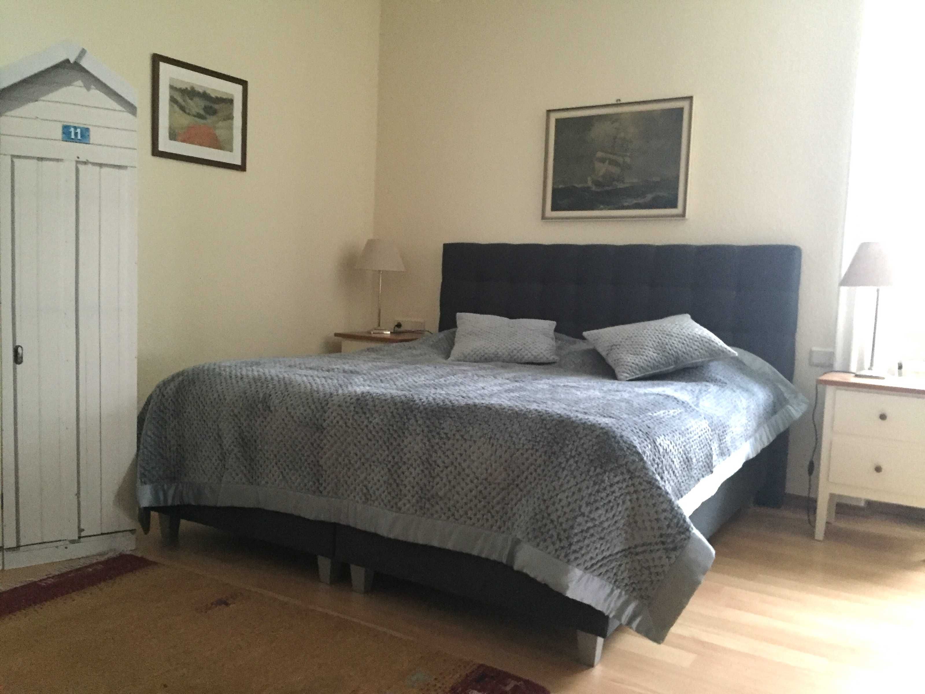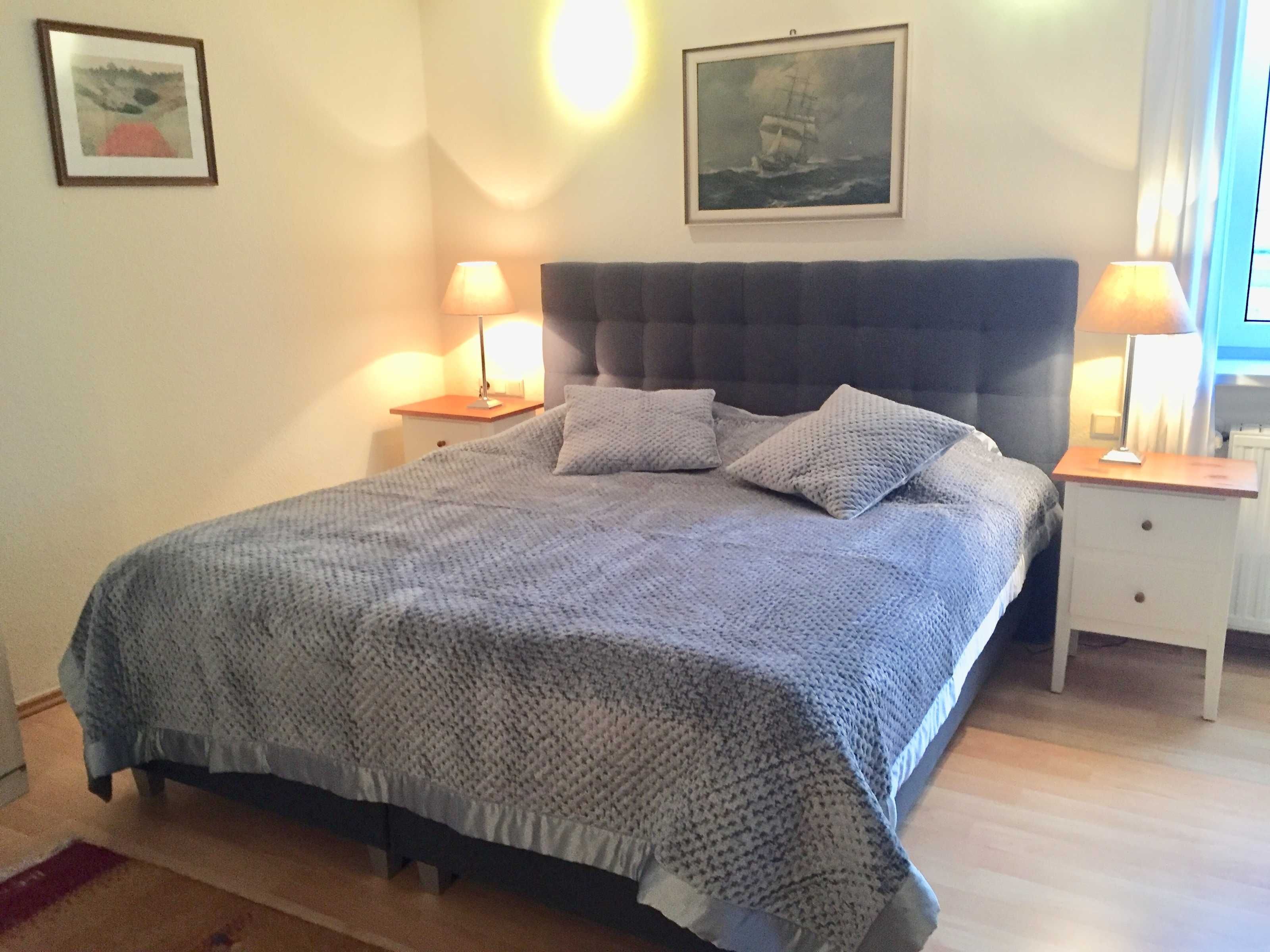 Das große Schlafzimmer verfügt über ein 1,80 m breites Boxspring-Doppelbett, einen Kleiderschrank und eine Kommode. Das kleine Schlafzimmer ist mit einem Einzelbett und einer Kommode ausgestattet. Im Wohn-/ Esszimmer gibt es darüber hinaus ein komfortables Schlafsofa für 2 Personen, so dass insgesamt 5 Personen übernachten können.