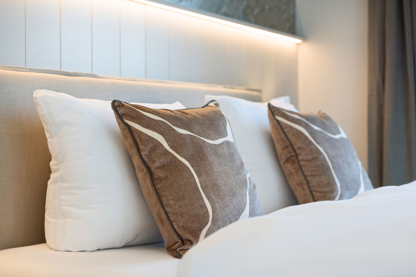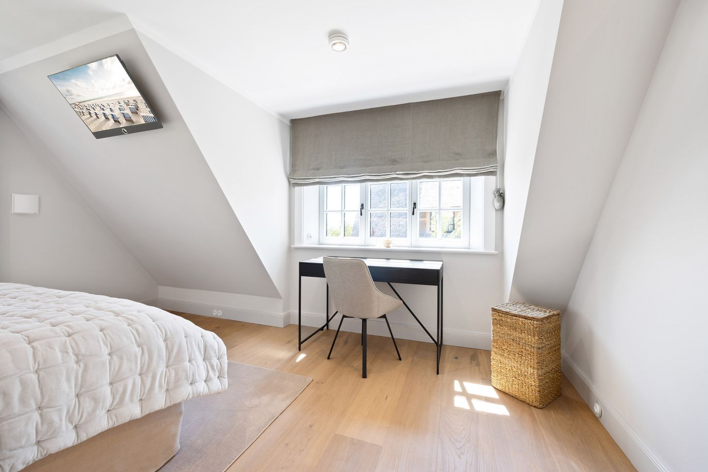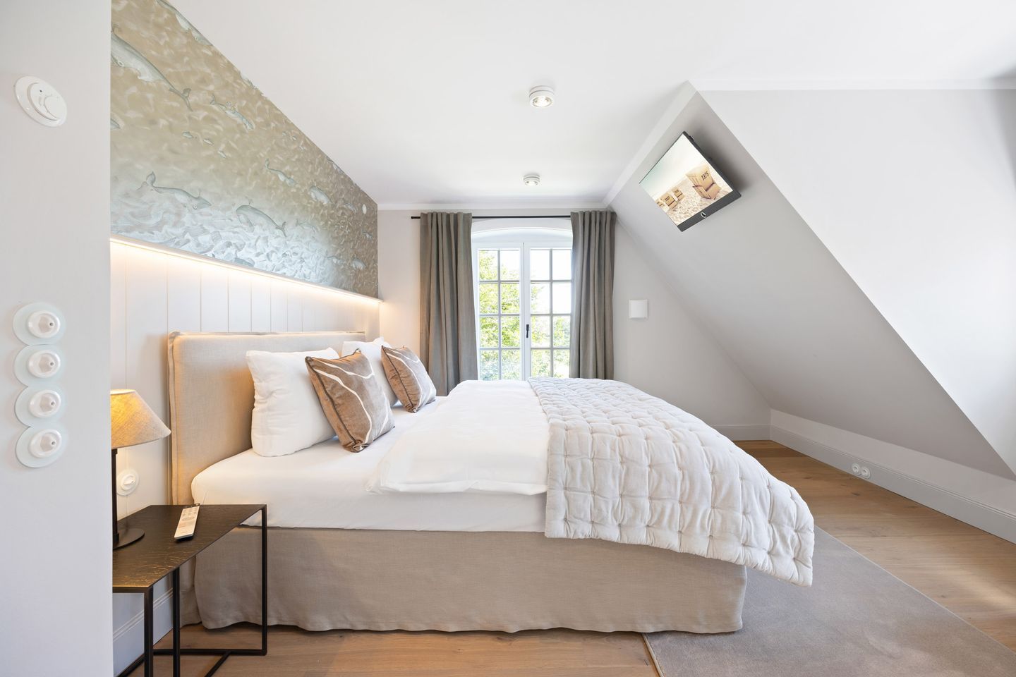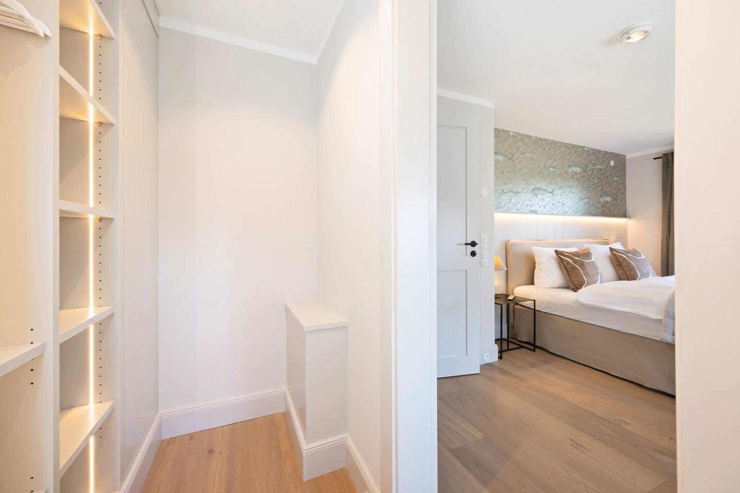 Die Doppelhaushälfte bietet stilvoll eingerichtete Schlafzimmer: Drei Zimmer sind jeweils mit einem komfortablen Boxspringbett sowie einem eigenen Ankleideraum ausgestattet. Das vierte Schlafzimmer verfügt über ein Schlafsofa für eine Person. So genießen Sie höchsten Komfort und erholsame Nächte.