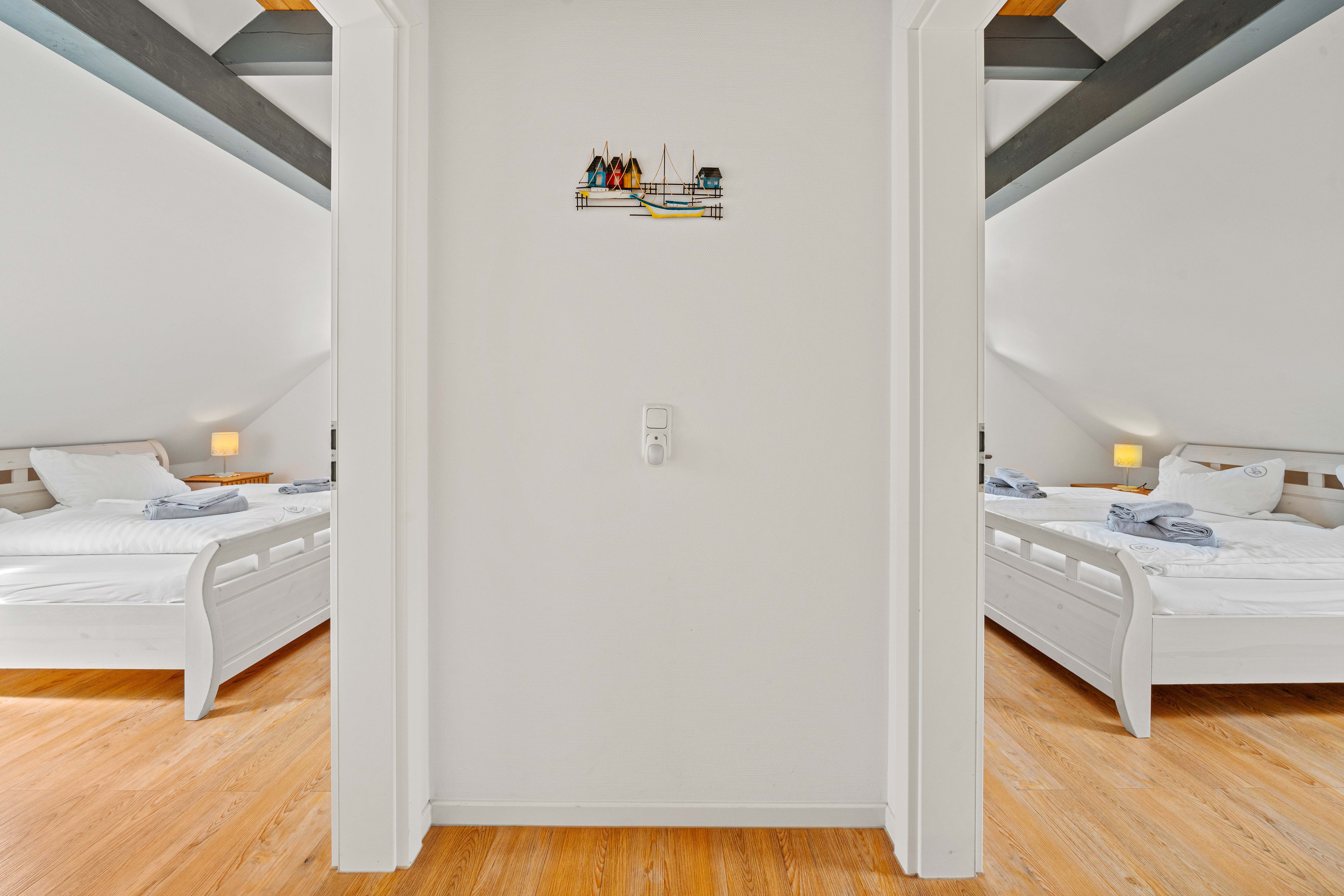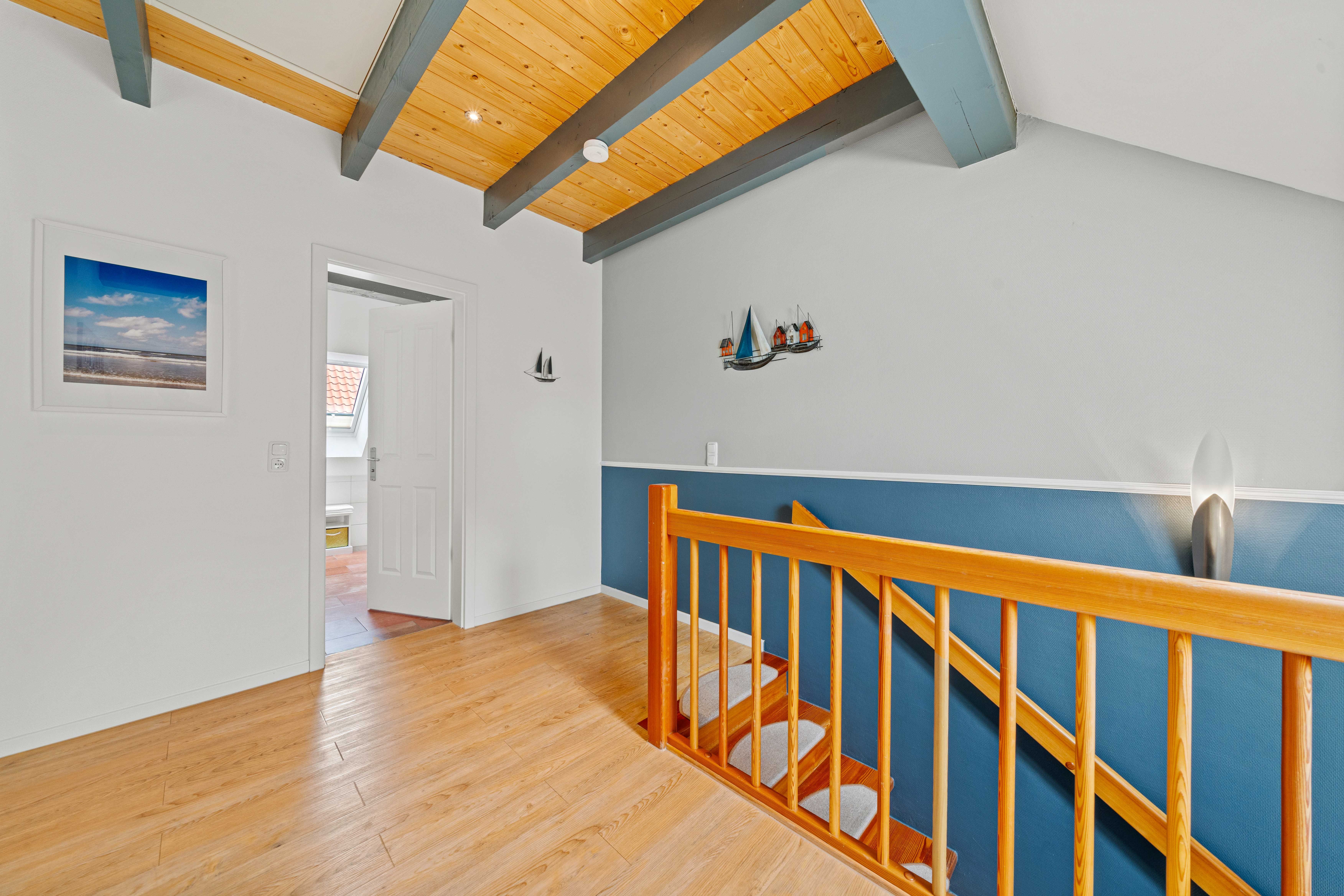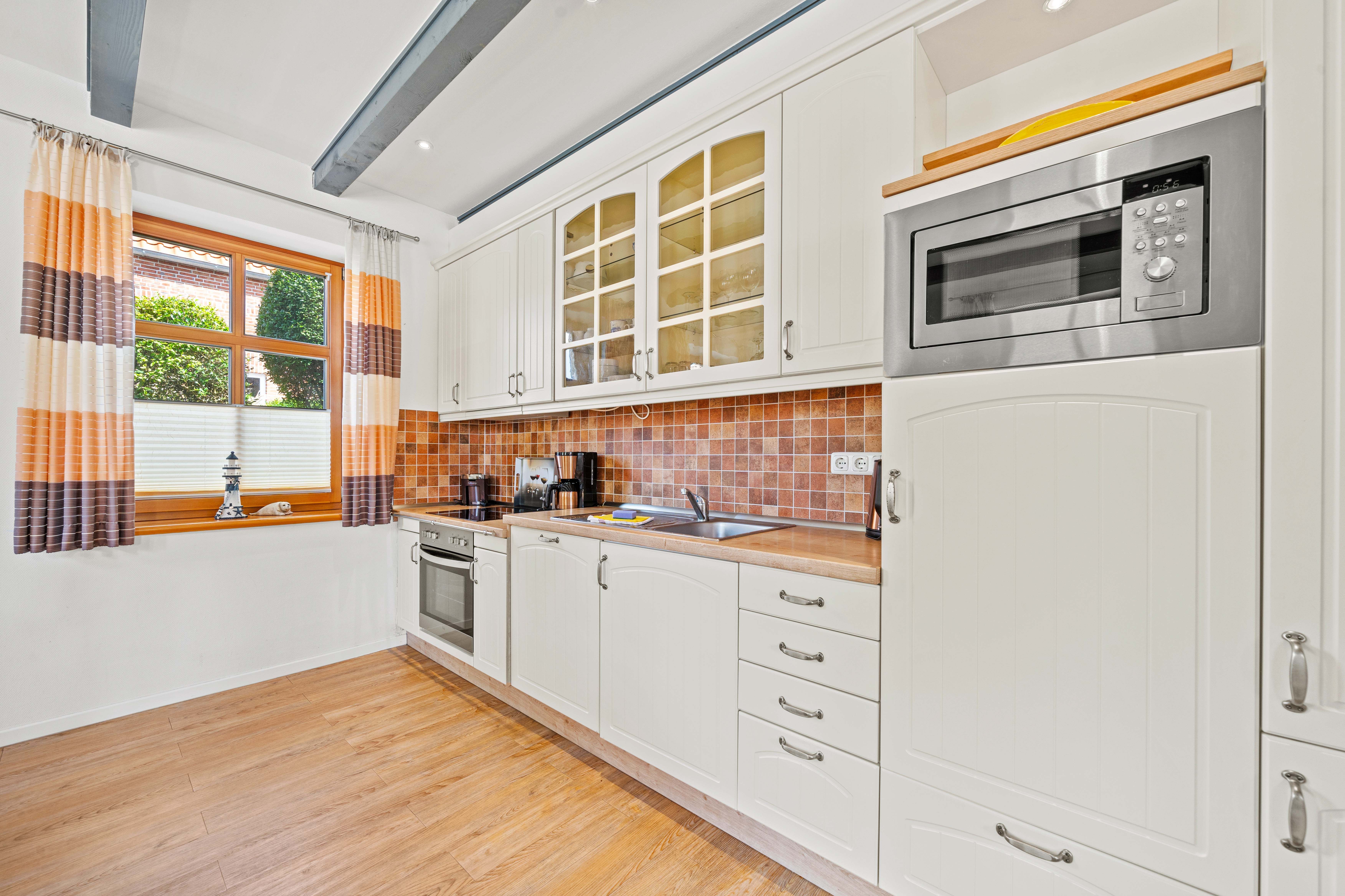Mitten im historischen Hafen, direkt am Alten Deich 25, liegt die stilvolle Ferienwohnung Bummert am Hafen Nr. 3 eine gemütliche Unterkunft im charmanten Dreigiebelhaus mit nur drei Wohneinheiten. Auf großzügigen 90qm erwartet Sie ein Ort zum Ankommen und Wohlfühlen, ideal für bis zu vier Personen. Die Wohnung besticht durch ihren hellen, offenen Wohnbereich, der mit einem gemütlichen Kamin, einer großen Wohnlandschaft, einem Esstisch und einer modernen Einbauküche ausgestattet und somit das Herzstück der Wohnung ist. Weiterhin bietet die Wohnung im Obergeschoss zwei liebevoll eingerichtete Schlafzimmer mit Doppelbetten. Besonders komfortabel für den gemeinsamen Urlaub mit der Familie oder Freunden sind die beiden Badezimmer, wovon eines mit ebenerdiger Dusche und das andere mit einer Badewanne und einer zusätzlichen Dusche ausgestattet ist. Zur Wohnung gehören außerdem eine überdachte Terrasse, die auch bei norddeutschem Wetter ein geschützter Ort zum Verweilen ist sowie ein PKW-Stellplatz direkt am Haus. Auch ein gemeinschaftlich nutzbarer Waschraum mit Waschmaschine und Trockner ist vorhanden. Somit ist die Wohnung Bummert am Hafen Nr. 3 die perfekte Adresse für alle, die Ruhe, Komfort und die Nähe zum Wasser schätzen.